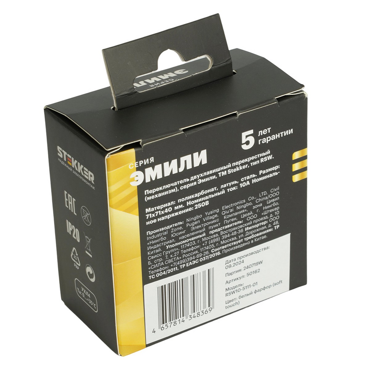 Переключатель перекрестный 2-клавишный STEKKER Эмили RSW10-5111-01 белый фарфор soft touch 50162 по цене 743 руб. с фотографией и техническими характеристиками. Для покупки товара нажмите кнопку "Купить" и перейдите в корзину или позвоните по телефону 8 (495) 585 32 60 или 8 (800) 222 23 53.