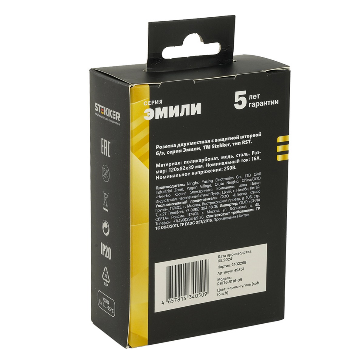 Розетка 2-ая с защитной шторкой б/з 16А STEKKER Эмили RST16-5116-05 черный уголь soft touch 49851 по цене 372 руб. с фотографией и техническими характеристиками. Для покупки товара нажмите кнопку "Купить" и перейдите в корзину или позвоните по телефону 8 (495) 585 32 60 или 8 (800) 222 23 53.