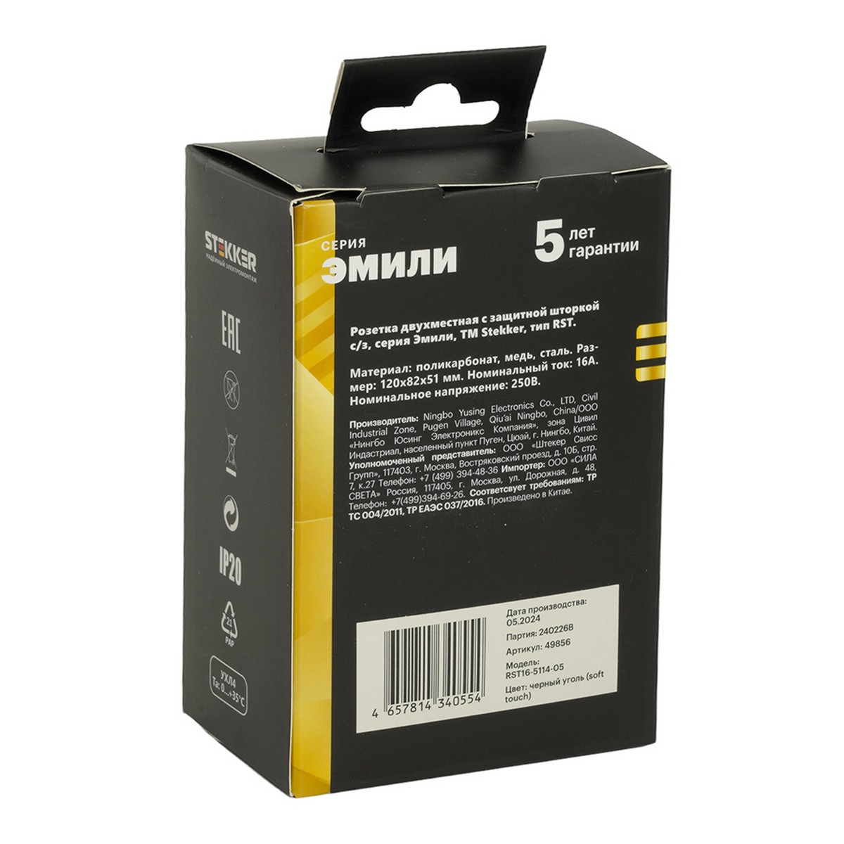 Розетка 2-ая с защитной шторкой STEKKER RST16-5114-05 в цвете черный уголь – это идеальное решение для безопасного и удобного подключения электрических приборов. Благодаря защитной шторке, она предотвращает случайное попадание посторонних предметов, что особенно актуально в домах с детьми или животными.