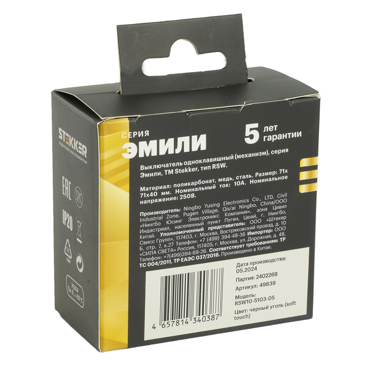 Выключатель 1-клавишный STEKKER Эмили RSW10-5103-05 черный уголь soft touch 49839 по цене 223 руб. с фотографией и техническими характеристиками. Для покупки товара нажмите кнопку "Купить" и перейдите в корзину или позвоните по телефону 8 (495) 585 32 60 или 8 (800) 222 23 53.