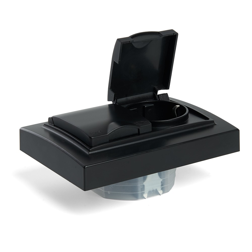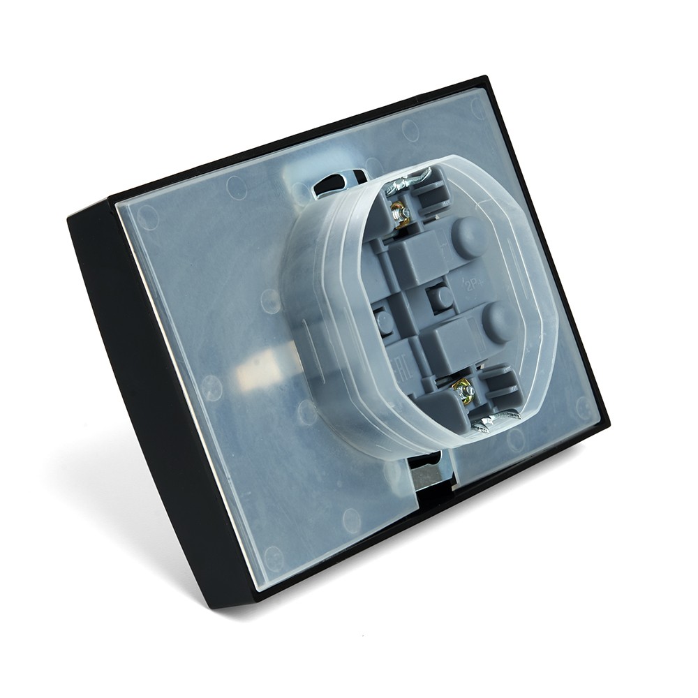 - Защитная крышка предотвращает попадание пыли и влаги, что увеличивает срок службы устройства и обеспечивает безопасность в помещениях с повышенной влажностью.