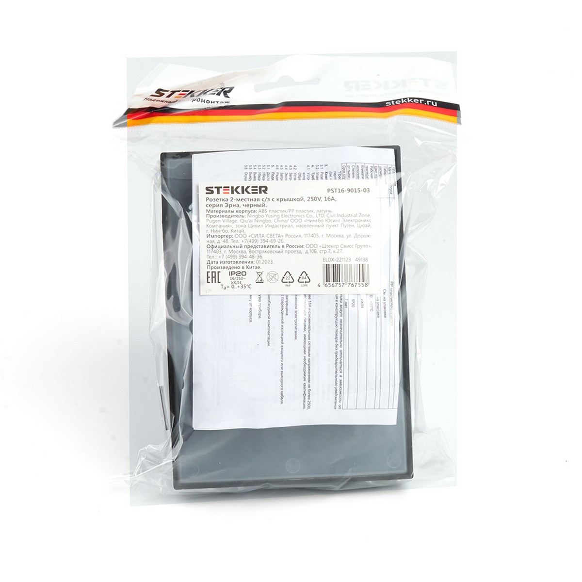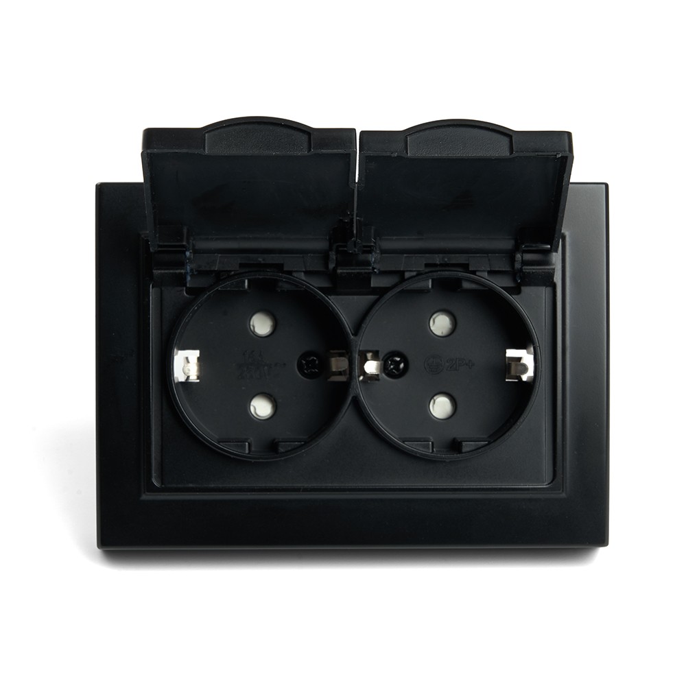 Розетка 2-местная с защитной крышкой STEKKER PST16-9015-03 (артикул 49138) — надежное решение для безопасного подключения электрических приборов. Модель из серии Эрна выполнена в стильном черном цвете, что делает её универсальной для любого интерьера.