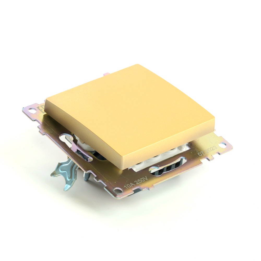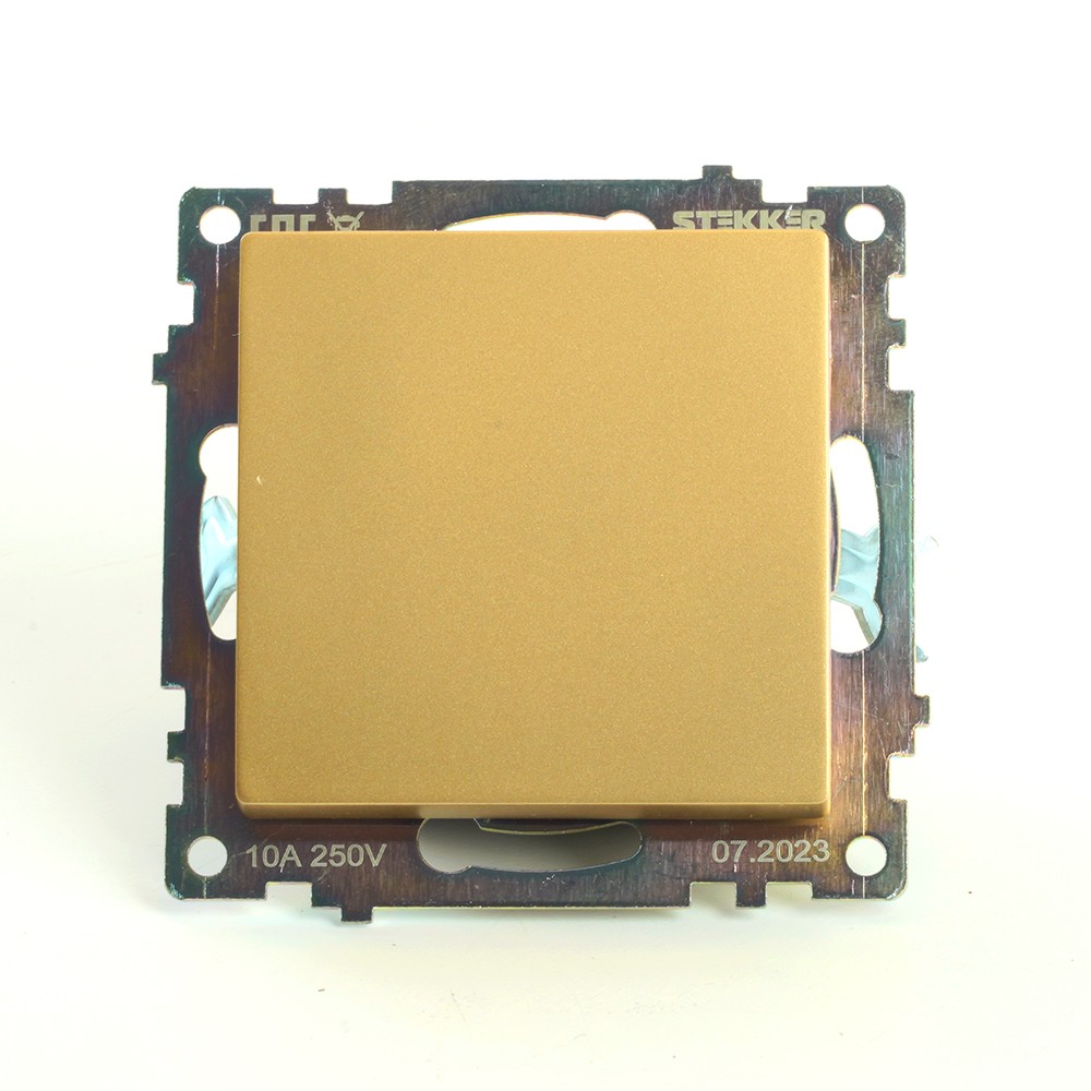 Переключатель одноклавишный STEKKER GLS10-7105-08 серии Катрин - это идеальное решение для вашего интерьера. Скрытый тип установки обеспечивает аккуратный и современный вид, а компактные размеры 55х55х35 мм позволяют ему гармонично вписаться в любой современный дизайн. Изготовленный из прочного поликарбоната и латуни, этот выключатель обеспечивает надежную эксплуатацию на протяжении долгого времени. Золотистый цвет придаст элегантность и стиль вашему помещению. Устройство поддерживает номинальное напряжение 250 В и ток 10 А, что гарантирует его высокую производительность и безопасность. С уровнем защиты IP20, переключатель идеально подходит для установки в помещениях. Выбирайте качество и стиль с переключателем STEKKER!