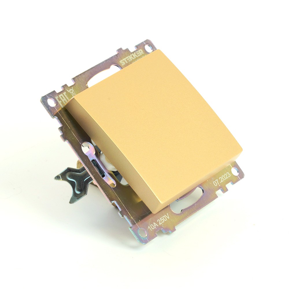 Переключатель 1-клавишный STEKKER GLS10-7105-08 250V 10А Катрин золото 49214 по цене 27 руб. с фотографией и техническими характеристиками. Для покупки товара нажмите кнопку "Купить" и перейдите в корзину или позвоните по телефону 8 (495) 585 32 60 или 8 (800) 222 23 53.