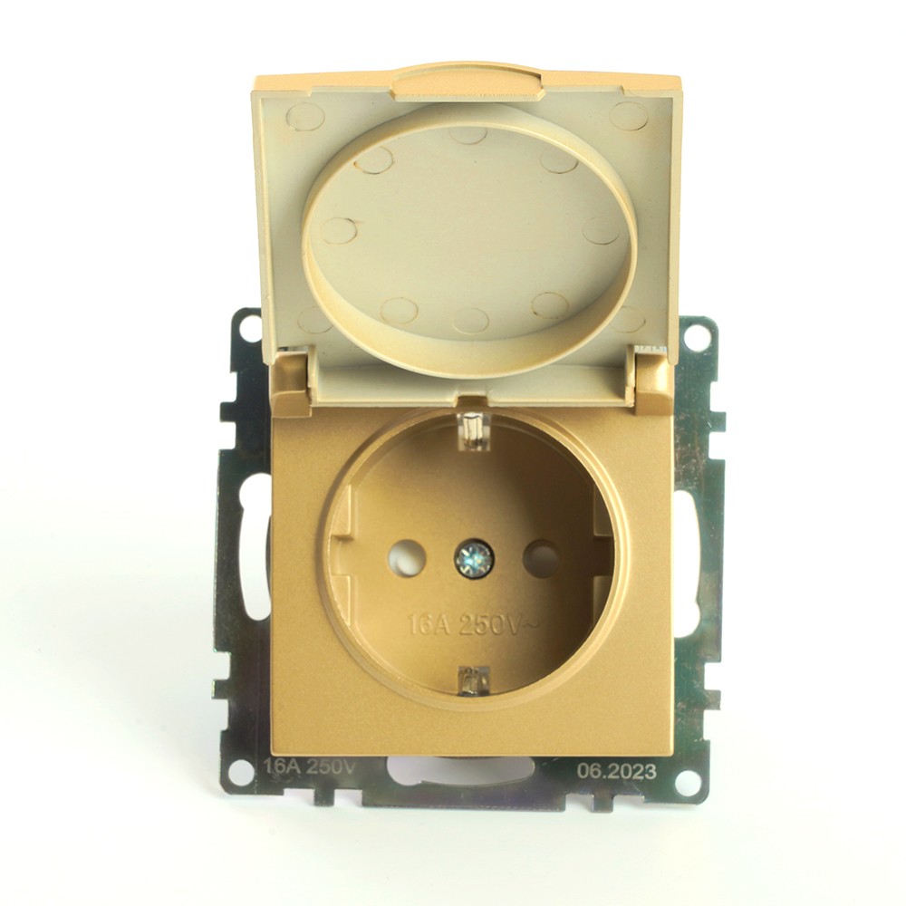 Розетка 1-местная с защитной шторкой и крышкой STEKKER GLS16-7112-08 в цвете золото — идеальное решение для создания безопасного и стильного электрического подключения в вашем доме или офисе. С максимальной нагрузкой 16А, она обеспечивает надежную работу электрических устройств. Защитная шторка предотвращает случайный контакт с токоведущими частями, что особенно важно в домах с детьми. Элегантный дизайн в золотом цвете гармонично впишется в интерьеры, требующие высококачественных отделочных решений. Розетка станет отличным выбором для установки в гостиных, спальнях и офисах, придавая помещению завершенный вид и обеспечивая безопасность использования.