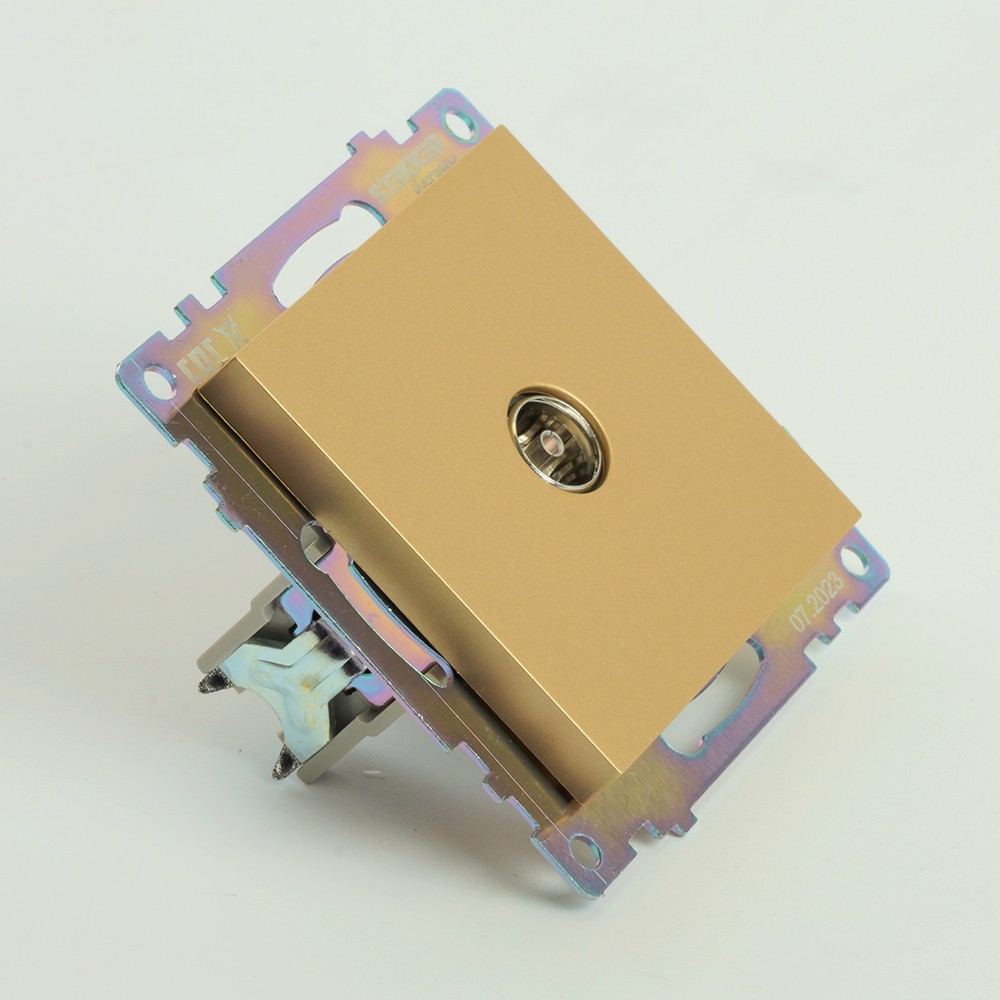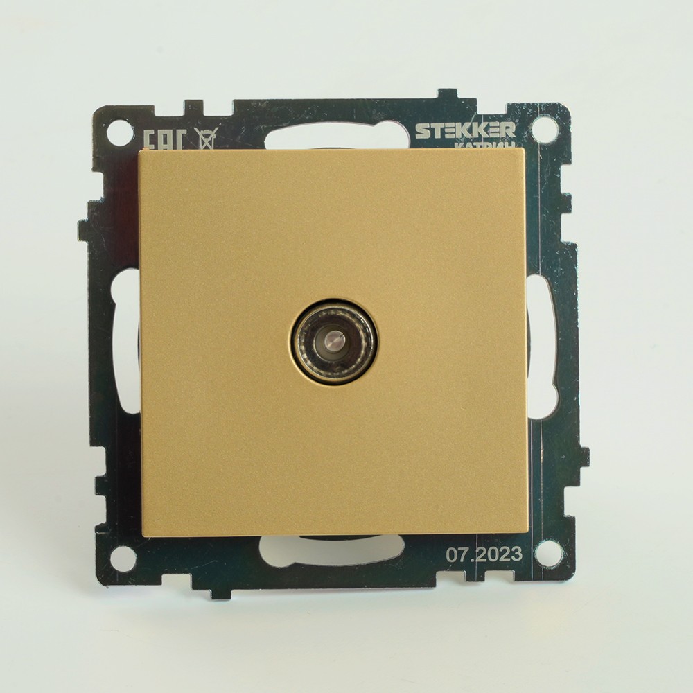 Розетка телевизионная 1-местная STEKKER GLS00-7108-08 — идеальное решение для подключения телевизоров и другой аудиовизуальной техники. Обеспечивает стабильный сигнал с импедансом 75 Ом в диапазоне частот 5-862 МГц, что гарантирует высокое качество передачи изображения и звука. Элегантный золотой цвет в серии Катрин добавит стиль и sophistication в любой интерьер. Эта розетка особенно полезна в домашних кинотеатрах, гостиных и медиацентрах, где важна надежная и качественная связь с источниками контента. Простота установки и долговечность делают её отличным выбором для современных пользователей.