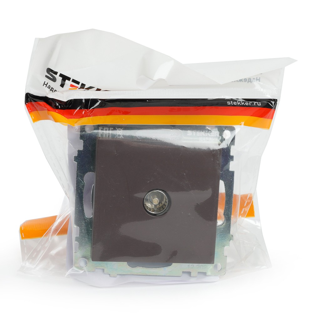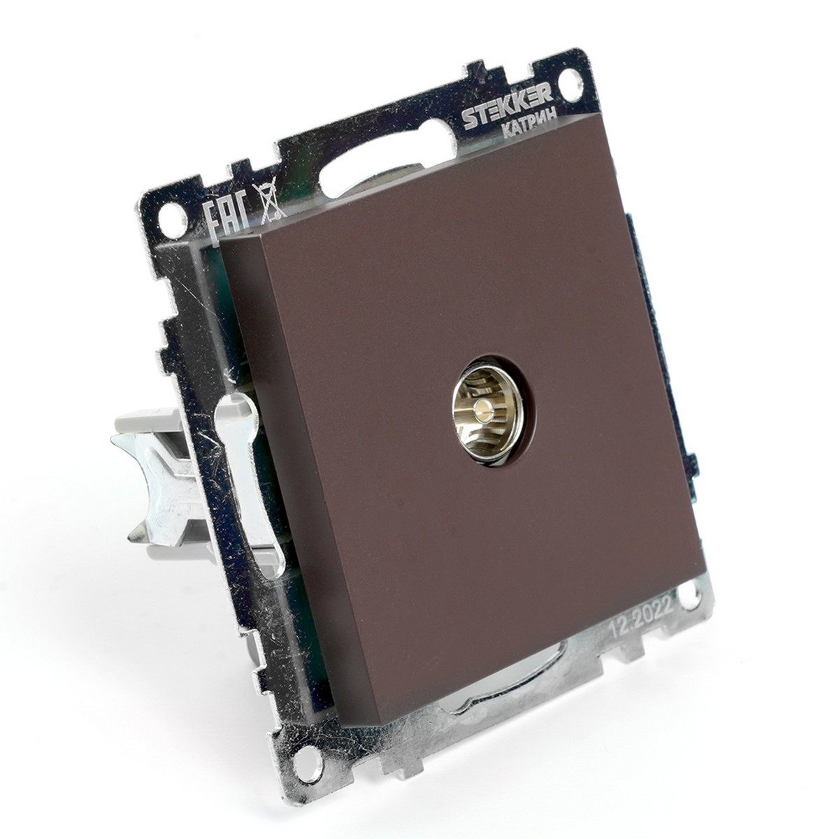 Розетка телевизионная 1-местная STEKKER GLS00-7108-05, артикул 49024, предназначена для подключения телевизоров и другой аудиовизуальной техники. Обеспечивает высококачественный сигнал с импедансом 75 Ом и частотным диапазоном 5-862 МГц. Элегантный шоколадный цвет из серии Катрин гармонично впишется в любой интерьер, а надежная конструкция гарантирует долговечность и безопасность эксплуатации. Идеальное решение для создания комфортной медиа-зоны.
