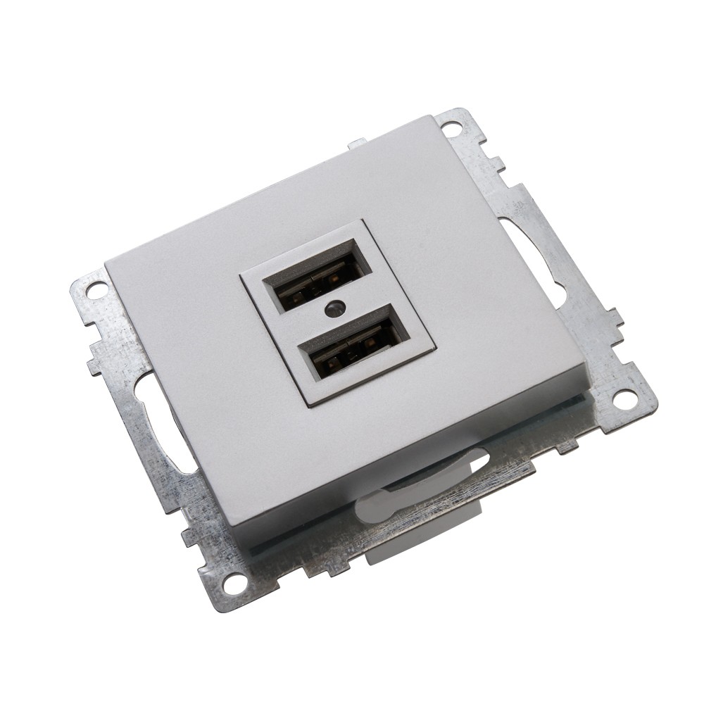 Розетка USB 2-местная STEKKER GLS10-7115-03 в цвете "Серебро" – идеальное решение для современного интерьера. Благодаря двум USB-портам, она позволяет одновременно заряжать несколько устройств, таких как смартфоны, планшеты и другие гаджеты, без необходимости в дополнительных адаптерах.