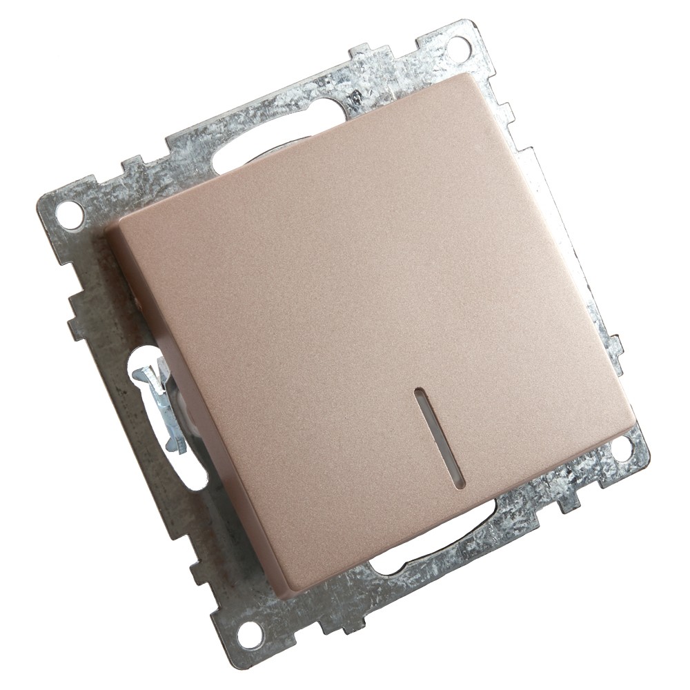 Выключатель одноклавишный STEKKER GLS10-7101-02 в цвете шампань — это удобное и стильное решение для управления освещением в вашем доме. С номинальным током 10А и напряжением 250В, он обеспечивает надежную работу в любых условиях. При установке в скрытом виде, его размеры 55*55*35 мм позволяют легко интегрировать выключатель в любой интерьер. Особенности модели включают подсветку желтого цвета, что облегчает нахождение выключателя в темноте. Изготовленный из прочного поликарбоната и латуни, он гарантирует долговечность и безопасность. Высокий класс защиты IP20 делает его идеальным для использования в сухих помещениях. Выбор выключателя STEKKER серии Катрин — это стиль, удобство и надежность в одном решении.