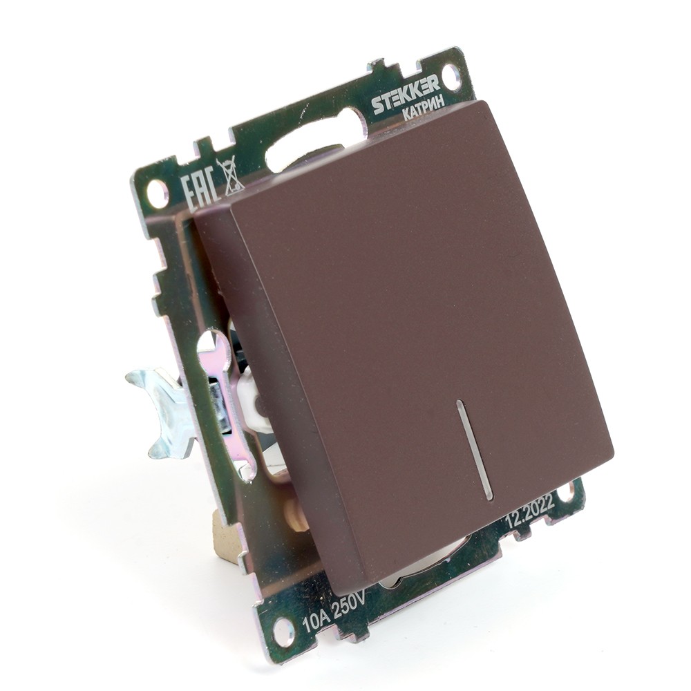 Выключатель 1-клавишный c индикатором STEKKER GLS10-7101-04 10А Катрин шоколад 49022 по цене 19 руб. с фотографией и техническими характеристиками. Для покупки товара нажмите кнопку "Купить" и перейдите в корзину или позвоните по телефону 8 (495) 585 32 60 или 8 (800) 222 23 53.