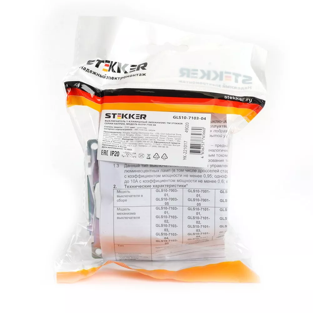 Выключатель 1-клавишный STEKKER GLS10-7103-04 250V 10А Катрин шоколад 49020 по цене 16 руб. с фотографией и техническими характеристиками. Для покупки товара нажмите кнопку "Купить" и перейдите в корзину или позвоните по телефону 8 (495) 585 32 60 или 8 (800) 222 23 53.