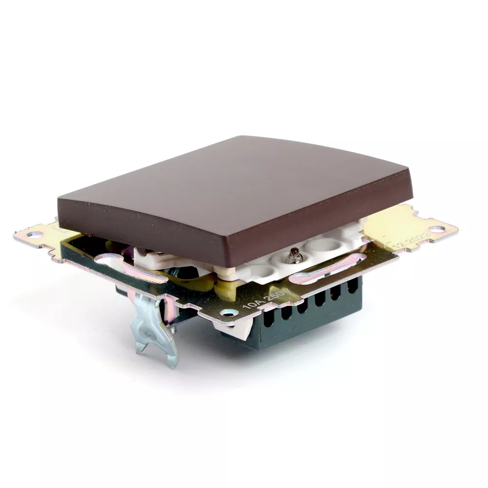 Представляем выключатель одноклавишный STEKKER GLS10-7103-04 из серии Катрин, артикул 49020. Этот стильный и функциональный продукт идеально подходит для скрытой установки, благодаря своим компактным размерам 55x55x35 мм. Выполненный в элегантном шоколадном цвете, он станет привлекательным элементом в любом интерьере. Изготовленный из качественного поликарбоната и с латунными элементами, выключатель обеспечивает надежность и долговечность в эксплуатации. Номинальное напряжение составляет 250 В, а ток — 10 А, что делает его подходящим для большинства бытовых нужд. Класс защиты IP20 гарантирует безопасность в сухих помещениях. Выключатель STEKKER — это идеальное сочетание стиля и надежности для вашего дома.