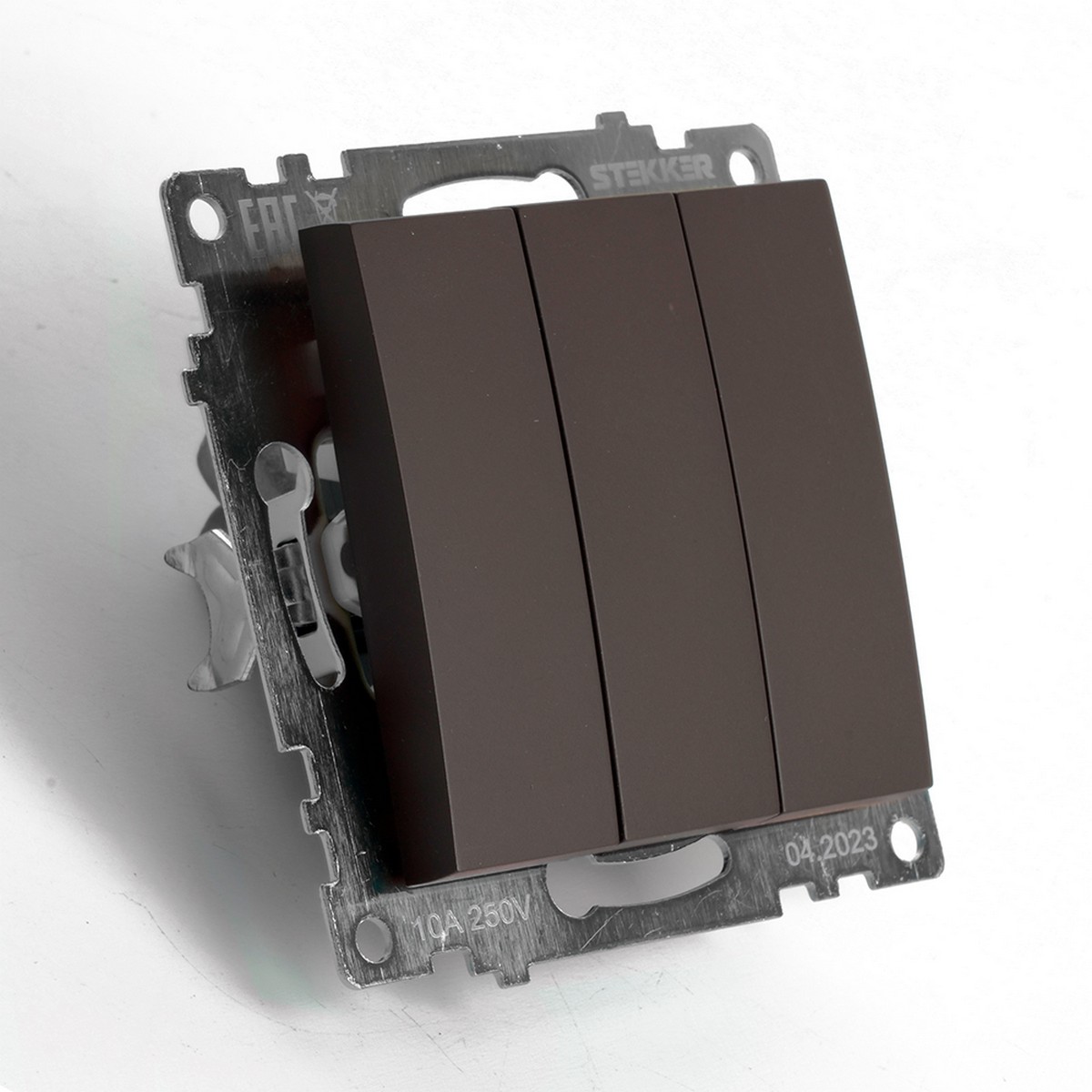 Выключатель 3-клавишный STEKKER GLS10-7108-04 250V 10А Катрин шоколад 49175 по цене 23 руб. с фотографией и техническими характеристиками. Для покупки товара нажмите кнопку "Купить" и перейдите в корзину или позвоните по телефону 8 (495) 585 32 60 или 8 (800) 222 23 53.