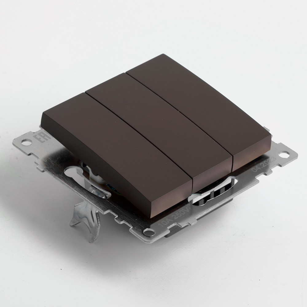 Выключатель трехклавишный STEKKER GLS10-7108-04 из серии Катрин — это стильное и функциональное решение для вашего интерьера. Скрытый тип установки и компактные размеры 55*55*35 мм позволяют легко интегрировать его в любые дизайнерские решения. Шоколадный цвет добавляет элегантности, а использование качественных материалов, таких как поликарбонат и латунь, гарантирует долговечность и устойчивость к износу. Выключатель назначен для работы при номинальном напряжении 250V и токе 10A, что обеспечивает надежную эксплуатацию. Уровень защиты IP20 позволяет использовать его внутри помещений. Выбор STEKKER — это выбор надежности и стиля для вашего дома.