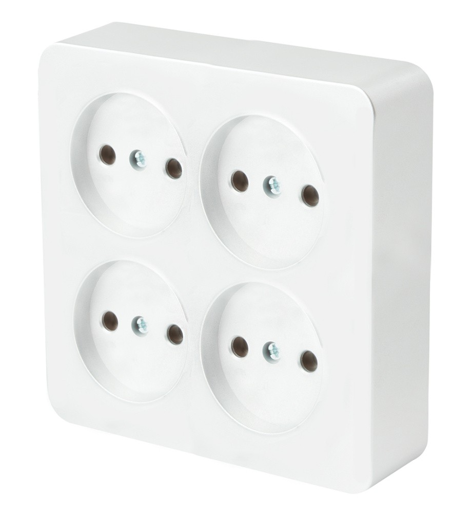 Розетка 4-местная STEKKER MST10-14S-01 б/з открытой установки квадрат София белый – это идеальное решение для организации электрических подключений в домашних и офисных условиях.