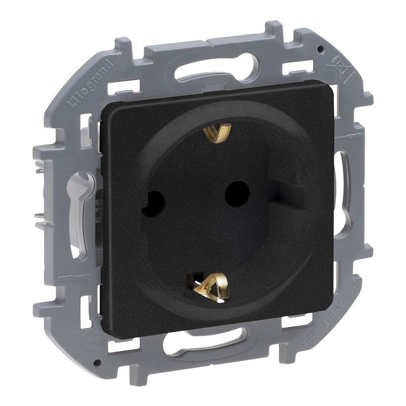 Розетка с заземлением Legrand Etika для скрытого монтажа, цвет антрацит. Максимальный ток 16 А, максимальная мощность 3680 Вт. Применяется в зданиях, оборудованных для повышения безопасности проводкой с заземлением (с защитным проводником).Особенности:- Контактная группа изготовлена из латуни CuZn37, имеет высокую степень упругости и сохраняет плотный контакт с вилкой, при длительной эксплуатации.- Скоба заземления имеет особый профиль для большей прочности. - Лицевая панель крепится на защелках. Изготовлена из прочного глянцевого поликарбоната, стойкого к механическим воздействиям, выгоранию и загрязнениям.- Зажимы для присоединения проводников винтовые. - Все токоведущие части розетки имеют защиту от случайного прикосновения. - Острые крепёжные лапки с широким углом раскрытия, обеспечивают надёжную фиксацию в монтажной коробке. Особенности серии Etika:- Корпус механизма- высококачественный поликарбонат, не проводит электрический ток, не поддерживает горение. - Специальный профиль внешнего контура механизма обеспечивает простоту и безошибочность многопостового монтажа. - Острые крепёжные лапки с широким углом раскрытия, обеспечивают надёжную фиксацию в монтажной коробке