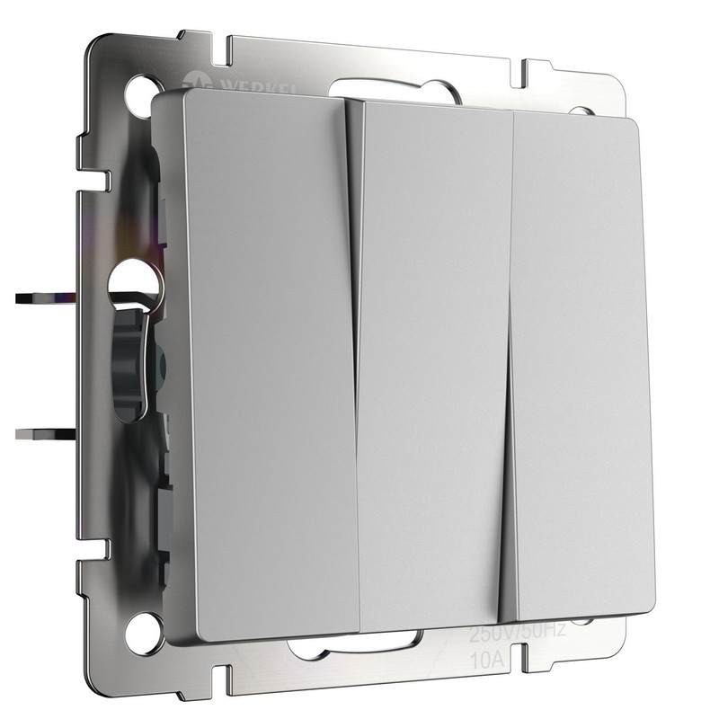 Улучшенная эргономика изделия снижает вероятность искрения при использовании светодиодов, а короткий и тихий ход клавиш обеспечивает комфорт при эксплуатации. Цвет механизма — стильное серебро, что делает выключатель не только функциональным, но и эстетически привлекательным. Werkel — это качество, которому можно доверять.
