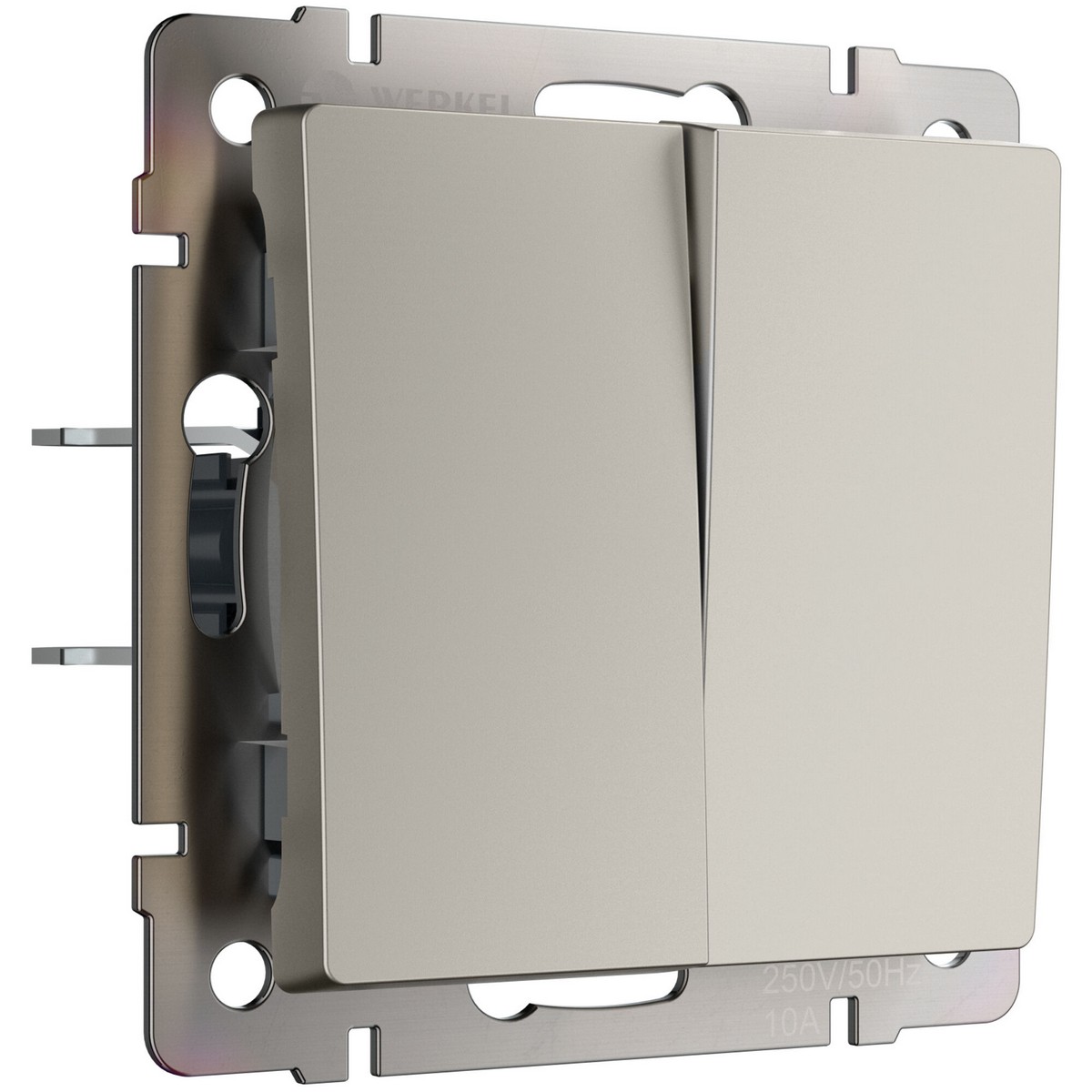 Механизм двухклавишного выключателя оснащен матовой лицевой панелью. Матовая поверхность; это современный тренд, задающий стиль вашему интерьеру. Она не бликует, обладает бархатистой фактурой и тактильной мягкостью. Дымчатый цвет будет эффектно смотреться в любом интерьерном пространстве и гармонично сочетаться с любыми материалами Механизм выключателя оснащен качественной контактной группой из фосфорной бронзы и технического серебра (90% серебра, 10% никеля), которая выдерживает большую нагрузку и обладает большим сроком службы. Суппорт из нержавеющей стали позволяет надежно зафиксировать изделие в подрозетнике. Механизм с суппортом из нержавеющей стали устанавливается в стандартную монтажную коробку и надежно фиксируется с помощью винтов и распорных лапок. Декоративные рамки легко устанавливаются и надежно фиксируются на суппорте при помощи клипс Easy Click Механизмы с матовыми накладками комбинируются с любыми рамками Werkel. Совместимость дает большой простор в создании множества уникальных сочетаний