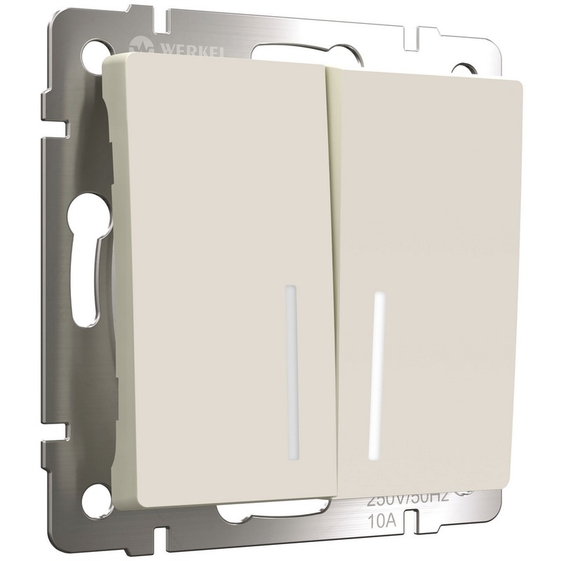 Выключатель Werkel двухклавишный с подсветкой слоновая кость W1120103 (артикул a051471) – это практичное устройство для управления освещением и вентиляцией в жилых и общественных помещениях. С номинальным током 10 А и напряжением до 250 В, данный выключатель может использоваться для независимой коммутации двух нагрузок, что делает его универсальным решением для любой электросети.