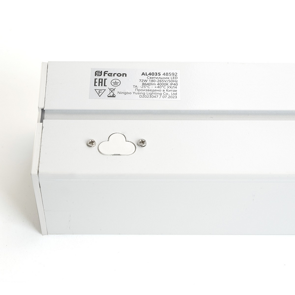 Светильник светодиодный линейный Feron AL4035 IP40 72W 6500К 48593 по цене 2 123 руб. с фотографией и техническими характеристиками. Для покупки товара нажмите кнопку "Купить" и перейдите в корзину или позвоните по телефону 8 (495) 585 32 60 или 8 (800) 222 23 53.
