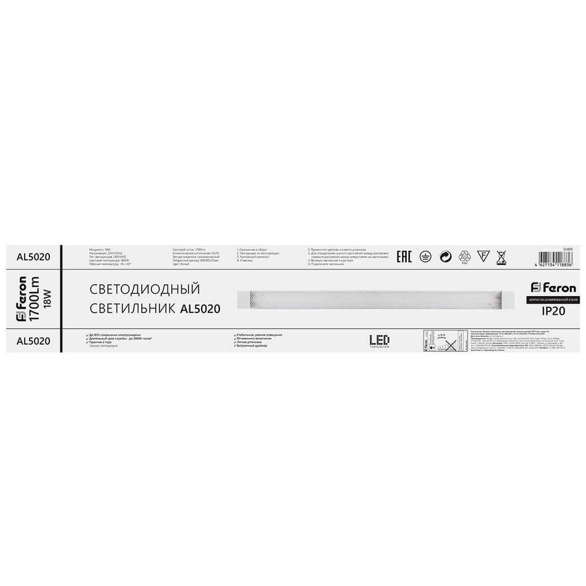 Светильник светодиодный линейный Feron AL5020 IP20 18W 4000K 32409 по цене 340 руб. с фотографией и техническими характеристиками. Для покупки товара нажмите кнопку "Купить" и перейдите в корзину или позвоните по телефону 8 (495) 585 32 60 или 8 (800) 222 23 53.