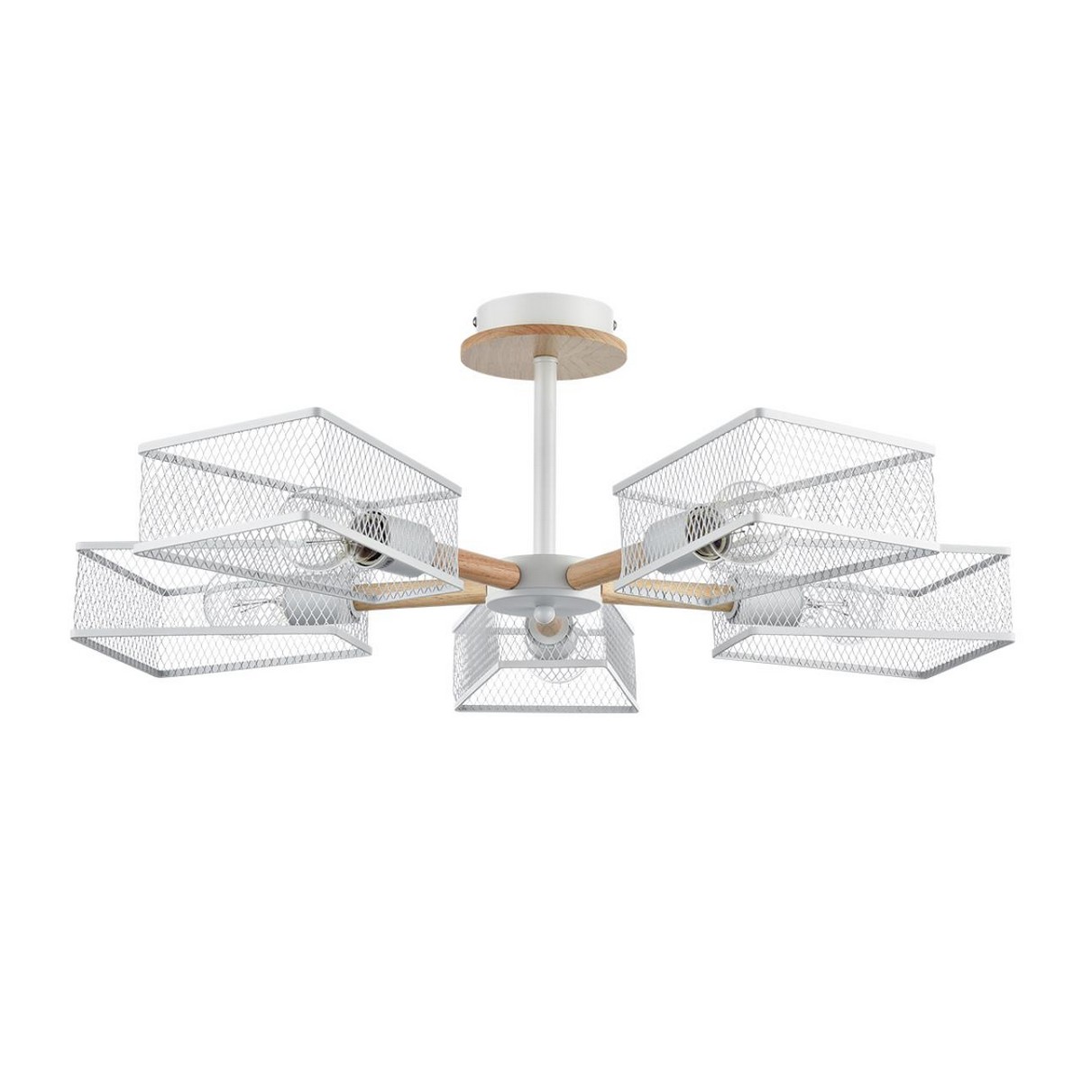 Серия светильников IRMA в стиле лофт подходит для помещений с низкими потолками. Трапециевидные плафоны из металлической сетки совершенно не скрадывают свет. Деревянный декор смягчает брутальность индустриального стиля.