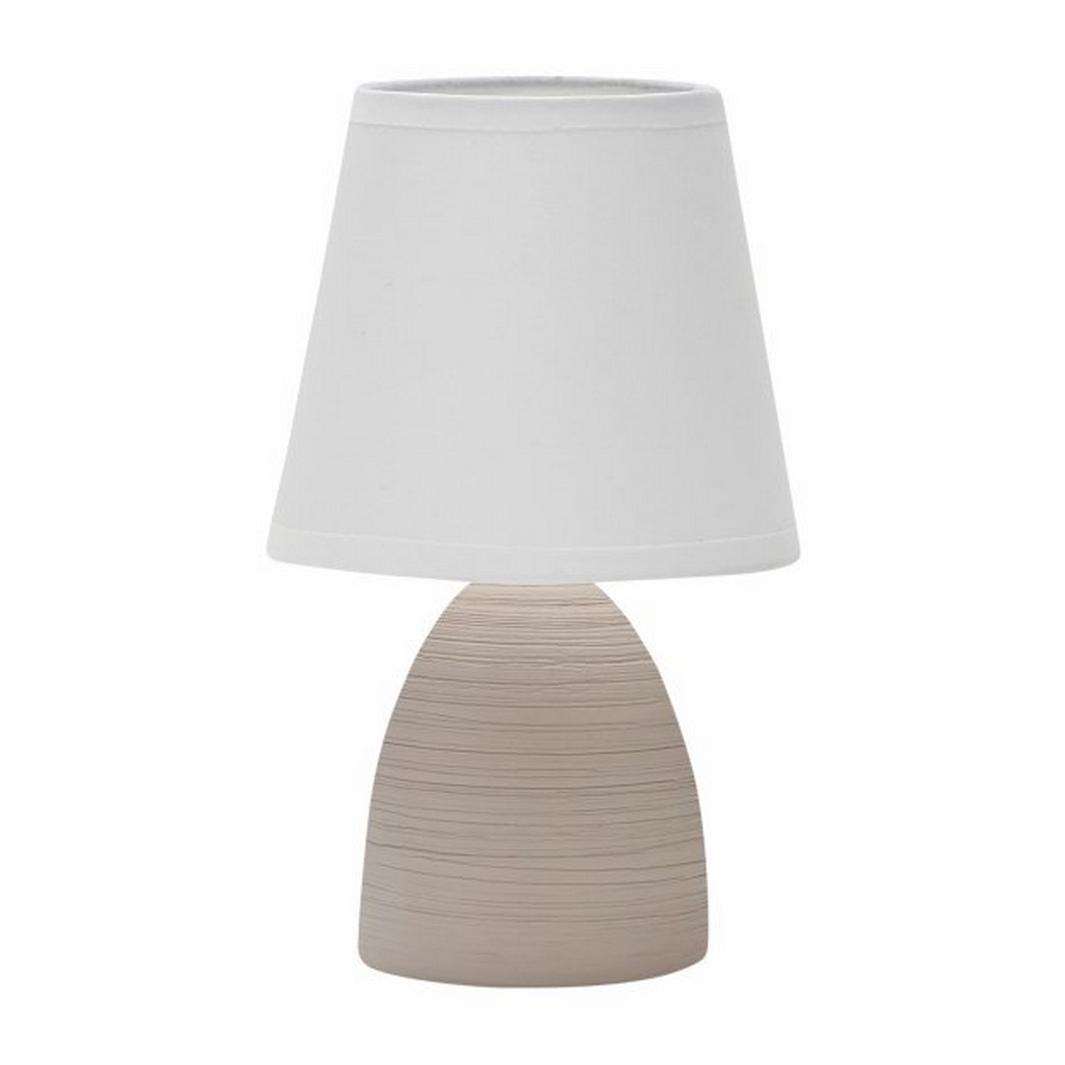 Преимущества: Стильный и современный дизайн идеально дополнит любой интерьер; Тканевый плафон предотвращает блики и создает мягкий рассеяный свет, способствующий спокойному отдыху; Керамическое основание светильника, выполненное в оригинальном стиле, придаёт ему прочность и устойчивость; Патрон лампы и плафон не нагреваются; Прочный и легкий в использовании; Компактные габариты позволяют удобно разместить светильник на небольшой поверхности; Светильник изготовлен из негорючих материалов.