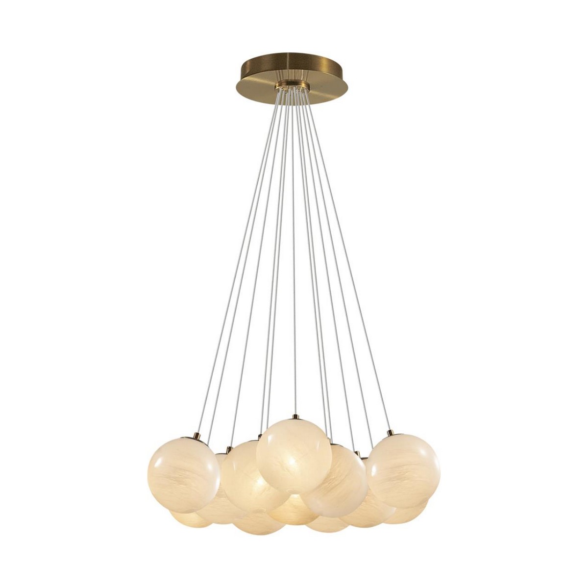 Образ шаров в линии Magia создает воздушную атмосферу. Белое глянцевое молочное стекло выполнено с эффектом облачного узора. Высота регулируется от 600 до 2000 мм. При желании можно использовать декоративное кольцо для сборки проводов.