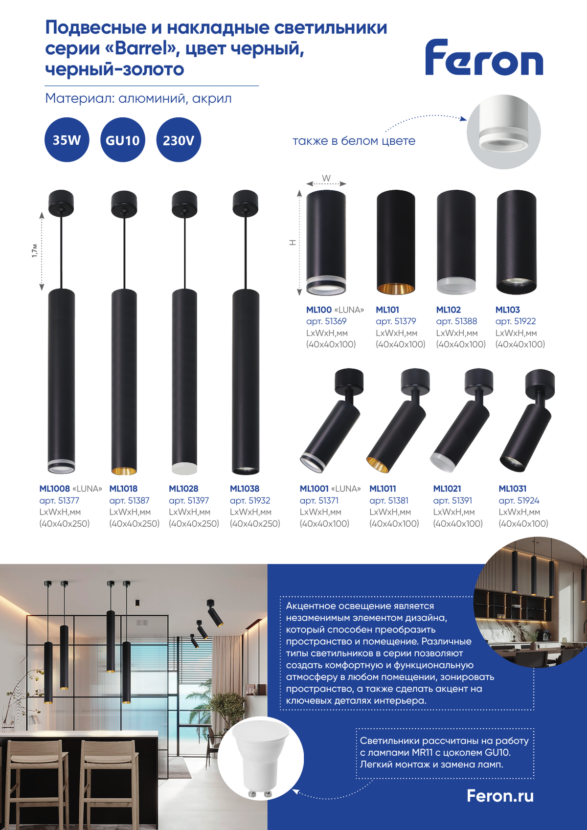 Светильник потолочный Feron ML1028 Barrel levitation на подвесе MR11 черный 51397 по цене 727 руб. с фотографией и техническими характеристиками. Для покупки товара нажмите кнопку "Купить" и перейдите в корзину или позвоните по телефону 8 (495) 585 32 60 или 8 (800) 222 23 53.