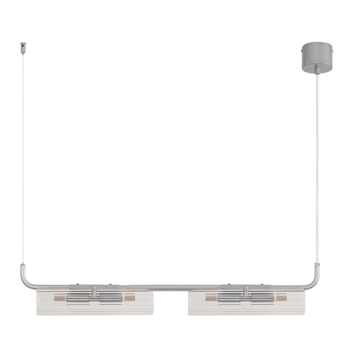 Главной особенностью модели являются массивные стеклянные плафоны, которые не только стильно смотрятся, но и способствуют равномерному распределению света. Изящные металлические цепочки, обработанные по технологии браширования с золотым оттенком, придают изделию эксклюзивный вид, делая его выразительным акцентом в интерьере. Серебристое покрытие не темнеет со временем, обеспечивая долговечность и сохранение первозданного блеска.