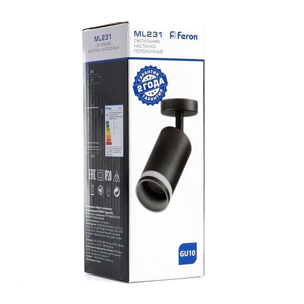 Светильник спот Feron ML231 настенно-потолочный GU10 черный 41487 по цене 579 руб. с фотографией и техническими характеристиками. Для покупки товара нажмите кнопку "Купить" и перейдите в корзину или позвоните по телефону 8 (495) 585 32 60 или 8 (800) 222 23 53.