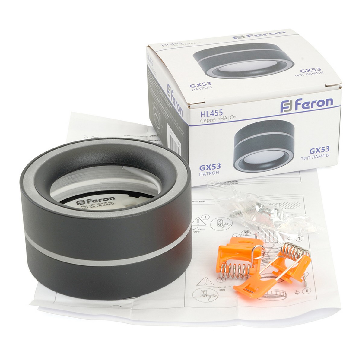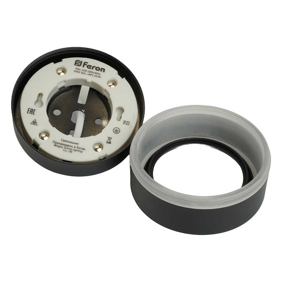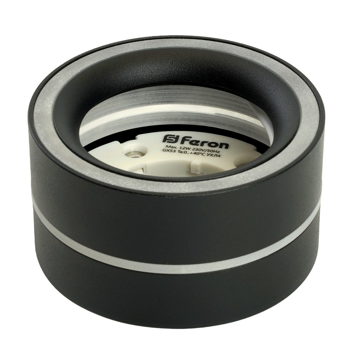 Светильник стационарный под лампу , спот (ИПО) FERON HL455, GX53 12W, 230V, IP20, цвет чёрный, корпус алюминий, акрил, 85*85*47