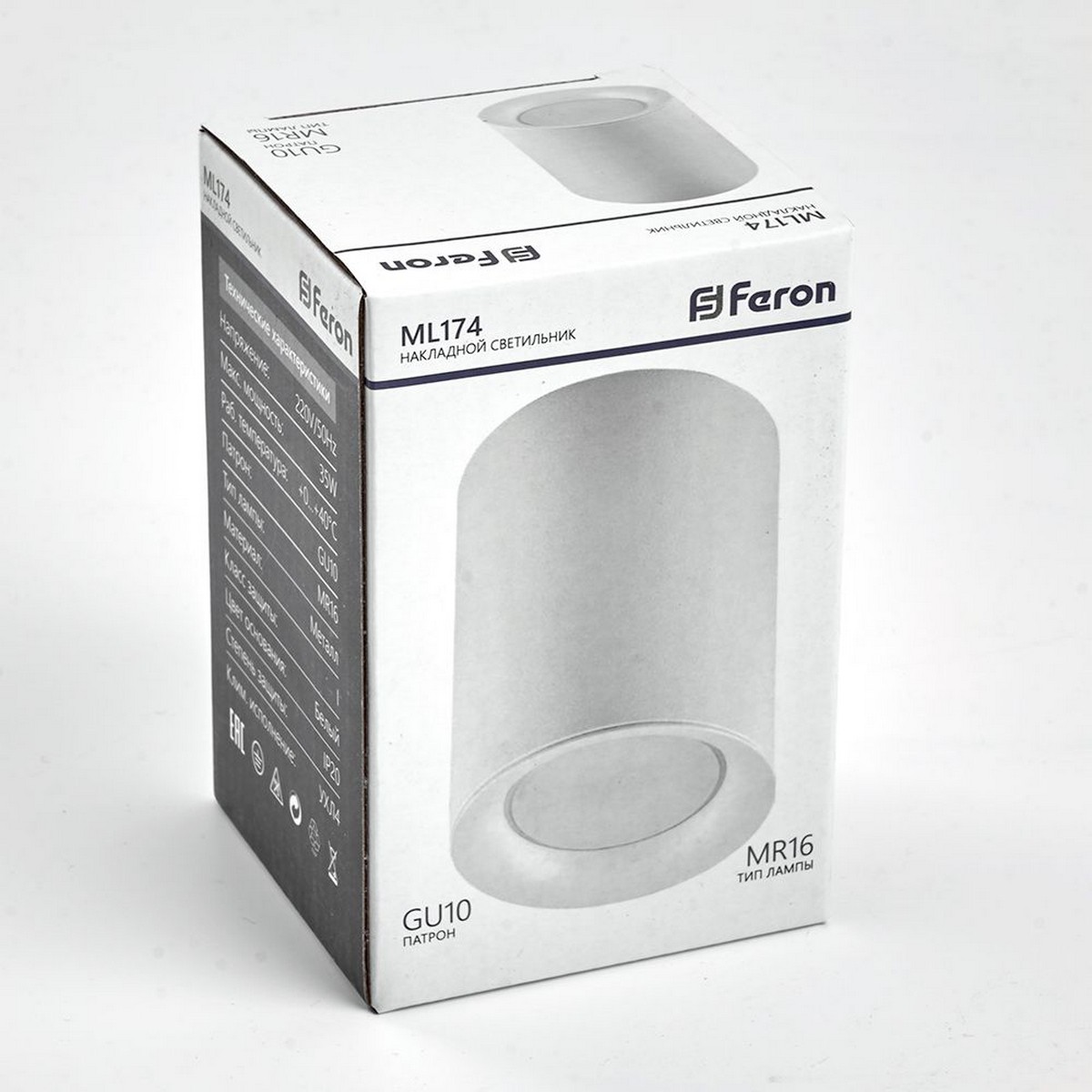 Современный светильник спот создаст уютное освещение в любом интерьере. Можно использовать как основное или акцентное освещение в любом помещении. Модель ML174 от производителя Feron в цвете Белый и типом лампы MR16 которая обеспечивает мощность 35 Ватт обеспечит Вас качественным светом. А универсальный крепеж (в комплекте) позволяет установить светильник на любую поверхность. Светильник накладной под лампу, спот (ИПО) FERON ML174, GU10 35W, 230V, IP20, цвет белый, корпус металл, 70*70*100