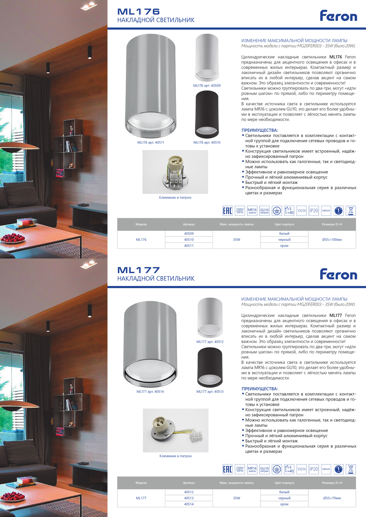 С размерами 55*55*100 мм, модель ML176 идеально подходит как для основного, так и для акцентного освещения различных помещений. Его мощность в 20 Вт и напряжение в 220V гарантируют достаточное освещение при невысоком энергопотреблении. Тип лампы MR16 способствует равномерному распределению света, создавая комфортную атмосферу в вашем доме или офисе.
