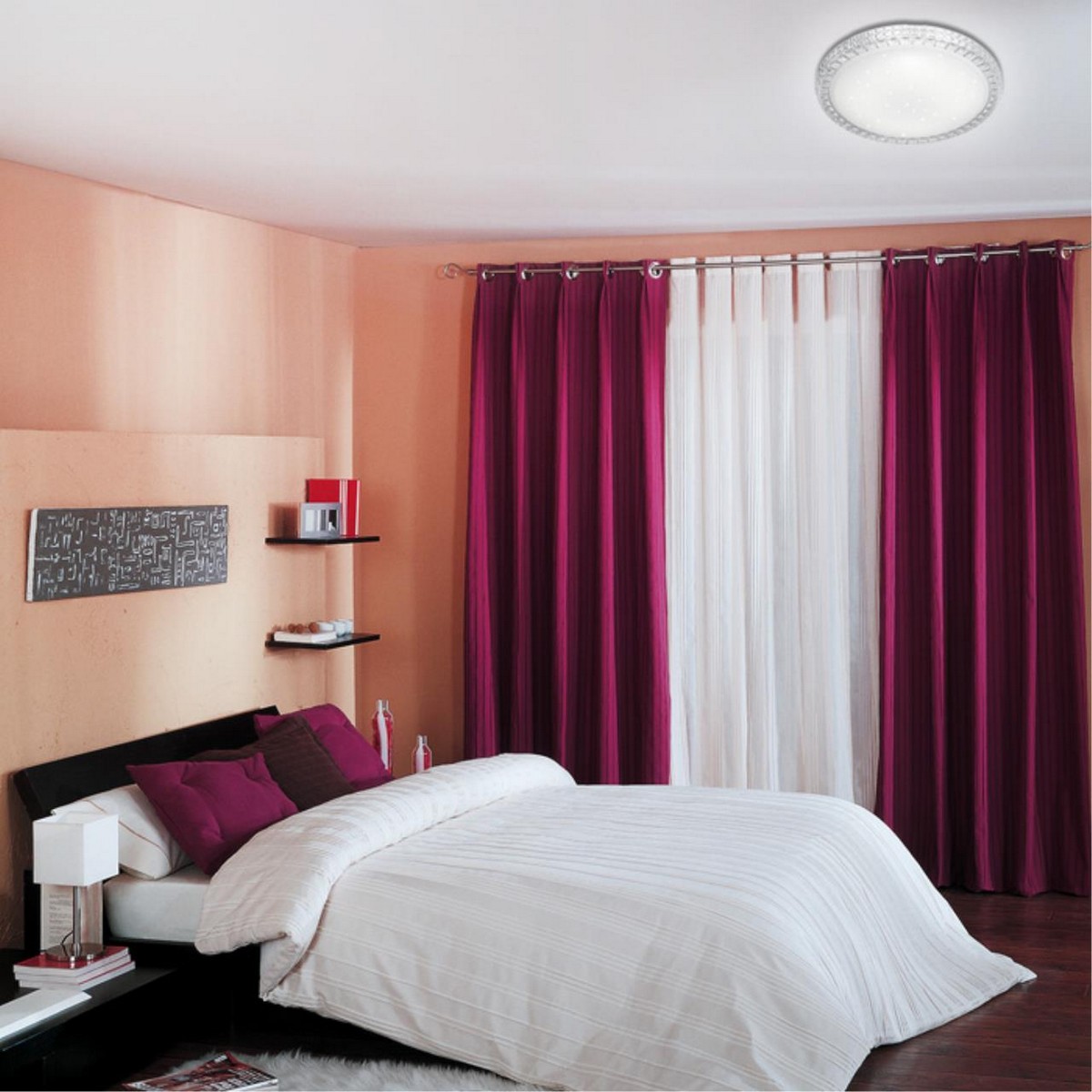 Светильник 2036/DL линии BRISA состоит из металлического основания (базы) и пластикового рассеивателя. Материал рассеивателя - высококачественный акрил белого цвета с глянцевой поверхностью, обеспечивающий светильнику равномерное рассеивание и хорошее светопропускание. Форма плафона: круглая, декорирована рисунком в виде прозрачных точек и рельефным ободом, которые придают включенному светильнику красивый эффект "звездного мерцания" и переливания. Степень защиты IP43 позволяет использовать светильник в определенных зонах влажных помещений. В комплект входит заменяемый LED модуль с линзами, мощностью 48Вт, которая соответствует лампе накаливания 430Вт. А также пульт ДУ, с помощью которого осуществляется плавное изменение цветовой температуры 3000-6300К, изменение яркости, переход в режим переключения теплого/белого/холодного/ночного света. Светильник имеет функцию "память".