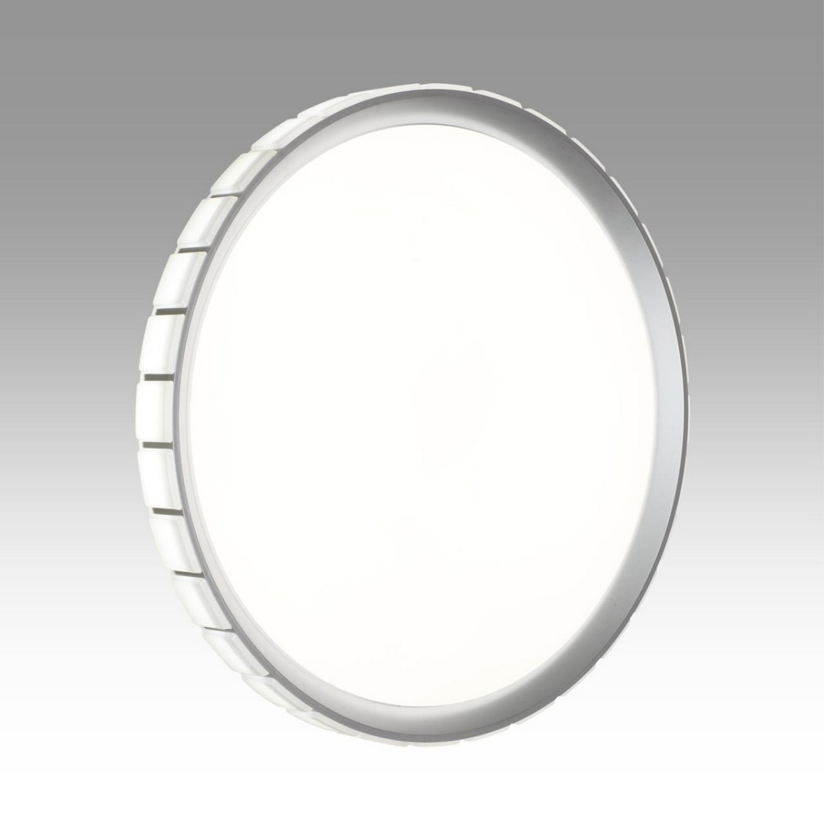Светильник 7696/ELN линии KUPI SILVER состоит из металлического основания (базы) и пластикового рассеивателя. Материал рассеивателя — высококачественный пластик марки PMMA 2.0 белого цвета с матовой гладкой поверхностью. Пластик обеспечивает светильнику равномерное рассеивание и хорошее светопропускание. Форма плафона — круглая, декорирована рельефным пластиковым светопропускающим ободом, цвет серебро. Степень защиты IP43 позволяет использовать светильник в определенных зонах влажных помещений. В комплект входит LED-модуль с линзами мощностью 76 Вт, соответствующей лампе накаливания 740 Вт, а также переключатель температуры цвета (ССT) на драйвере, с помощью которого осуществляется изменение цветовой температуры 3000/4000/6000 К и переход светильника в режим теплого/белого/холодного света. Для установки необходимого режима рекомендуется использовать удлиненный тонкий предмет типа небольшой отвертки.