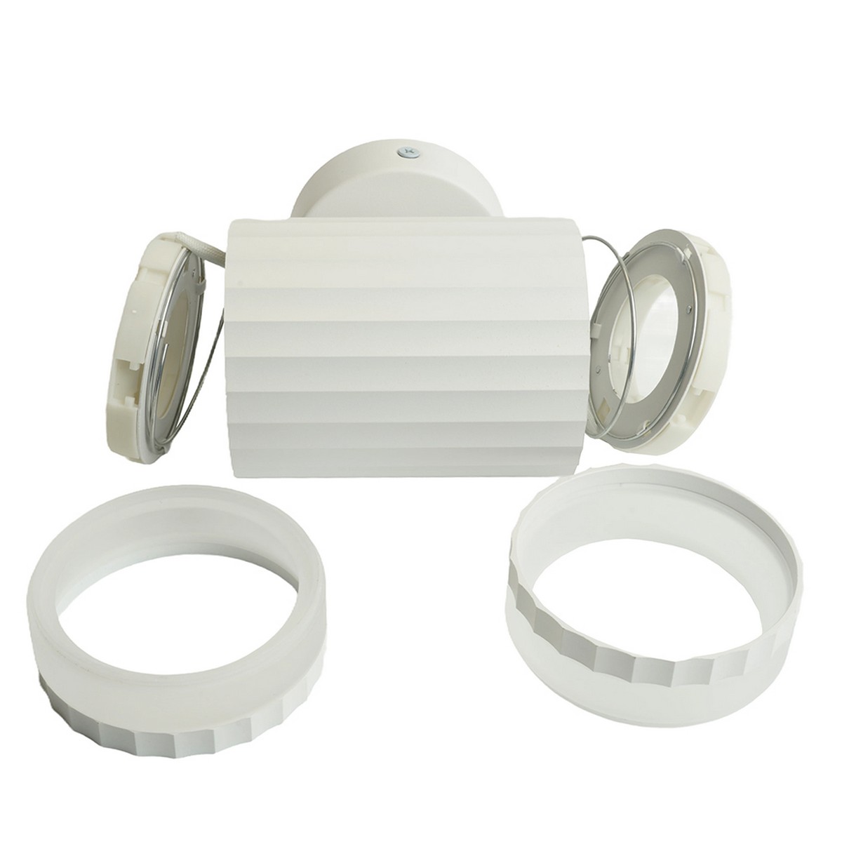 Модель оснащена двумя лампами GX53 мощностью 12Вт каждая, гарантирующими яркое и приятное освещение при напряжении 230В. Светильник имеет защиту IP20, что делает его подходящим для использования в сухих помещениях. Форма в виде цилиндра добавляет стильный и современный вид, красиво дополняя любой дизайн.