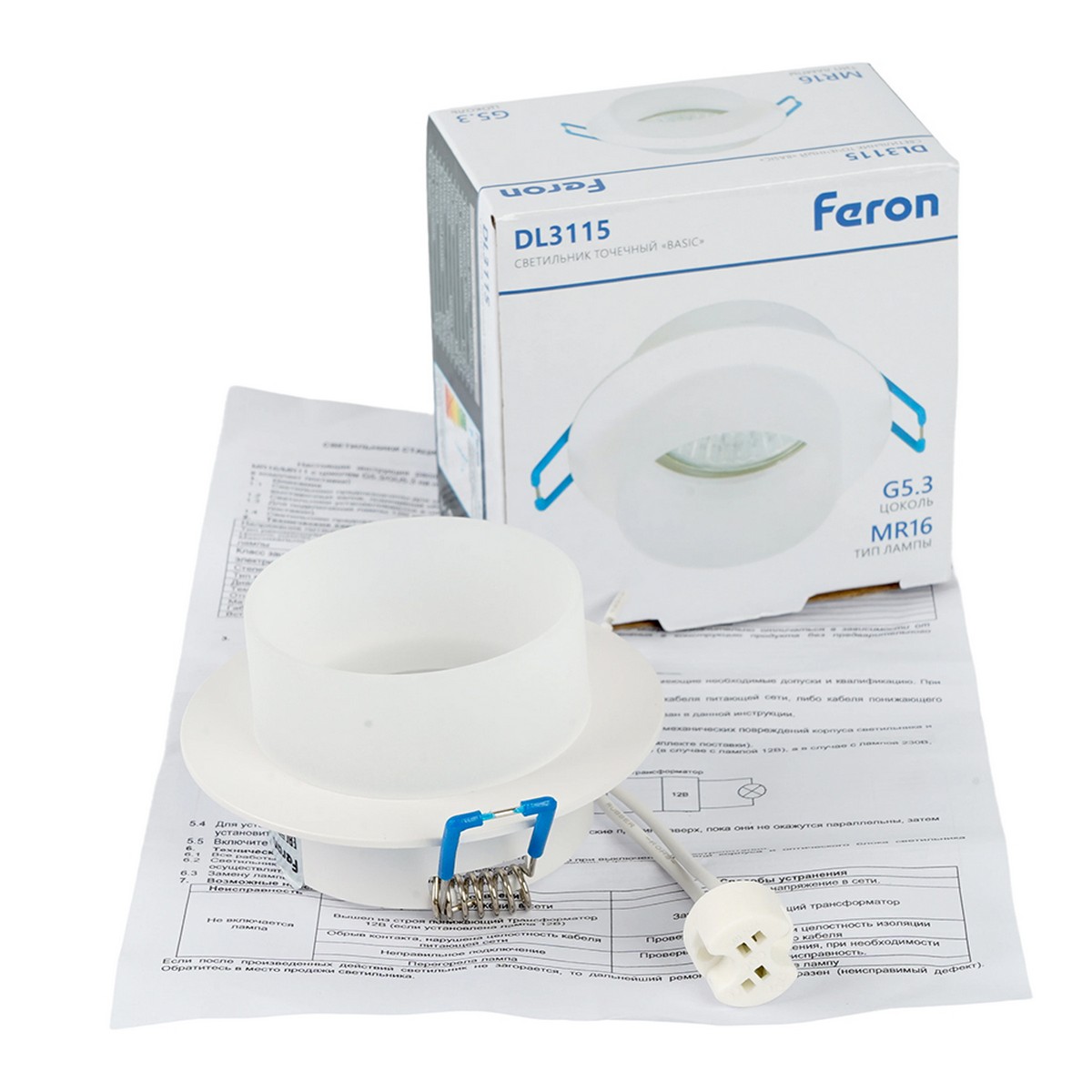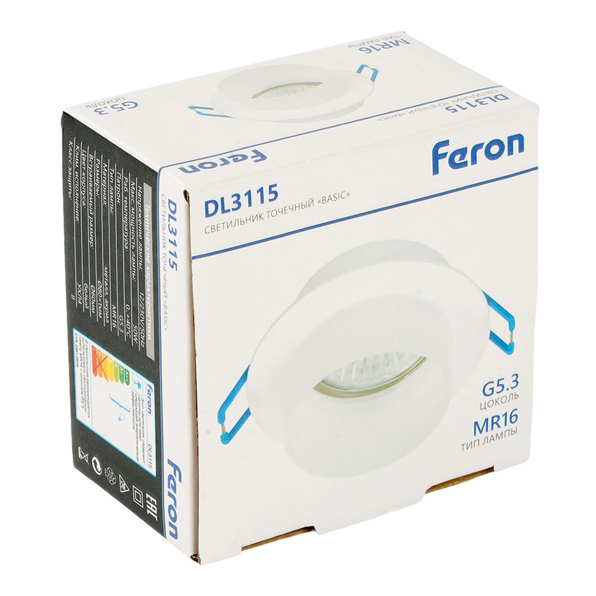 Светильник встраиваемый Feron DL3115 потолочный MR16 G5.3 белый 51935 по цене 365 руб. с фотографией и техническими характеристиками. Для покупки товара нажмите кнопку "Купить" и перейдите в корзину или позвоните по телефону 8 (495) 585 32 60 или 8 (800) 222 23 53.