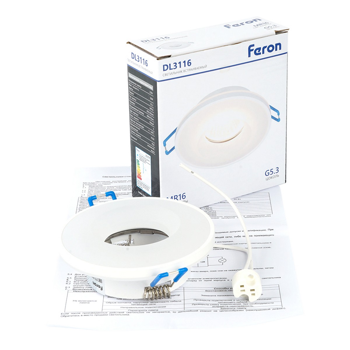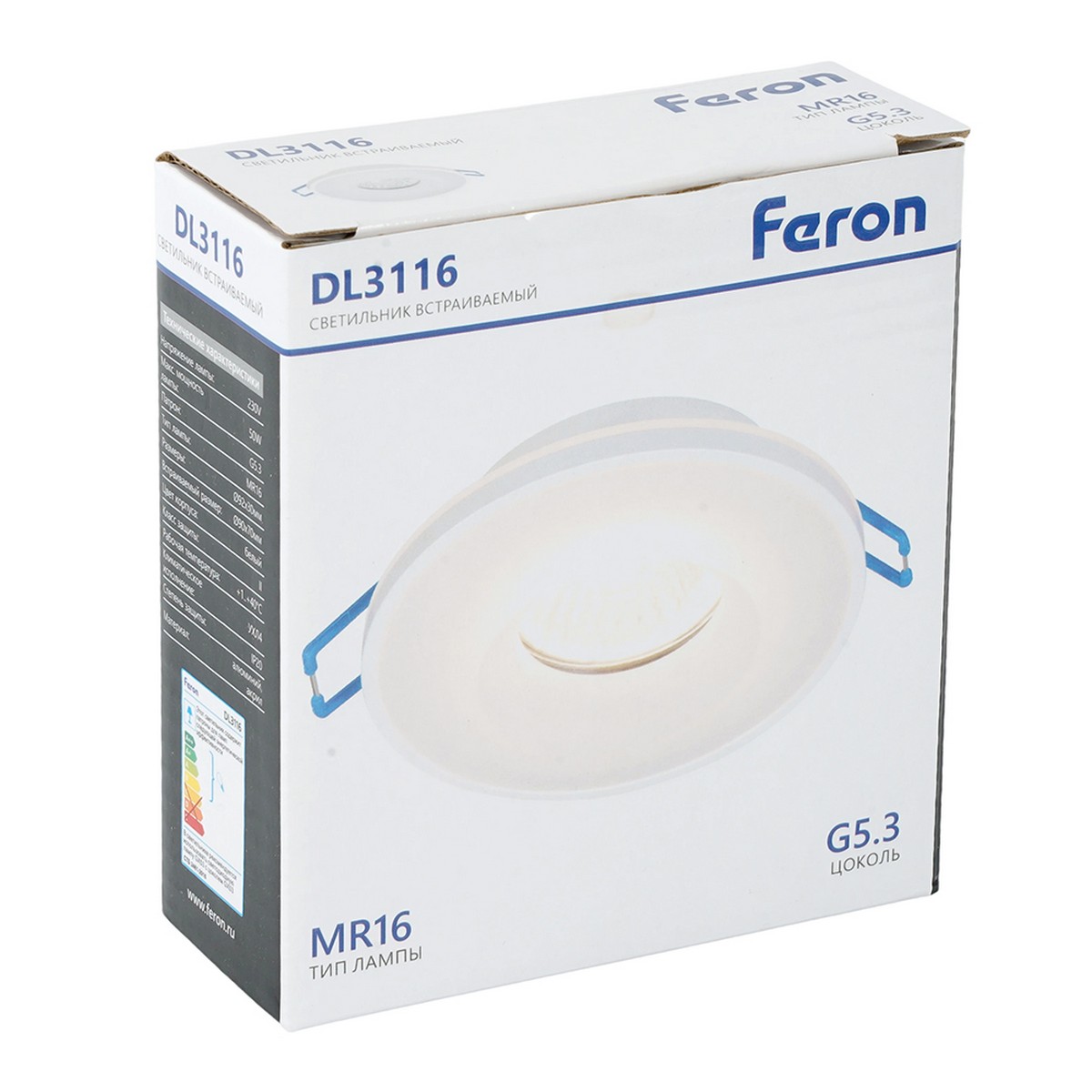 Светильник встраиваемый Feron DL3116 потолочный G5.3 белый 51940 по цене 512 руб. с фотографией и техническими характеристиками. Для покупки товара нажмите кнопку "Купить" и перейдите в корзину или позвоните по телефону 8 (495) 585 32 60 или 8 (800) 222 23 53.