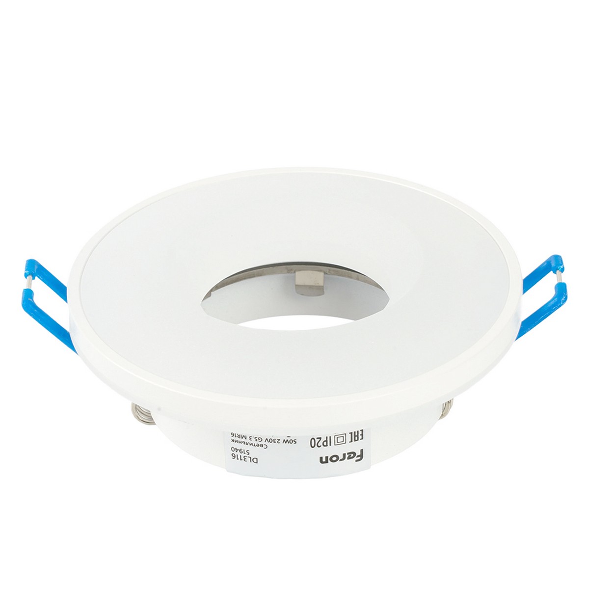 Светильник потолочный встраиваемый (-) FERON DL3116, под лампу G5.3 G5.3, белый, круг, 92*92*33 мм, монтажн.отв. 0*--мм, монтажный диаметр 90мм, корпус алюминий, акрил, неповоротный