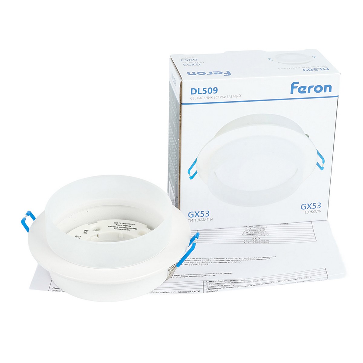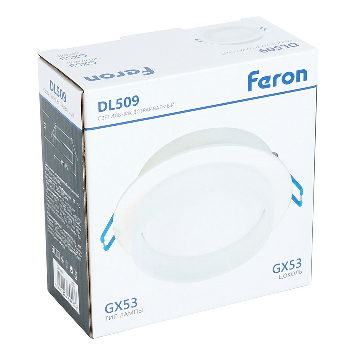 Светильник встраиваемый Feron DL509 потолочный GX53 белый 51937 по цене 558 руб. с фотографией и техническими характеристиками. Для покупки товара нажмите кнопку "Купить" и перейдите в корзину или позвоните по телефону 8 (495) 585 32 60 или 8 (800) 222 23 53.