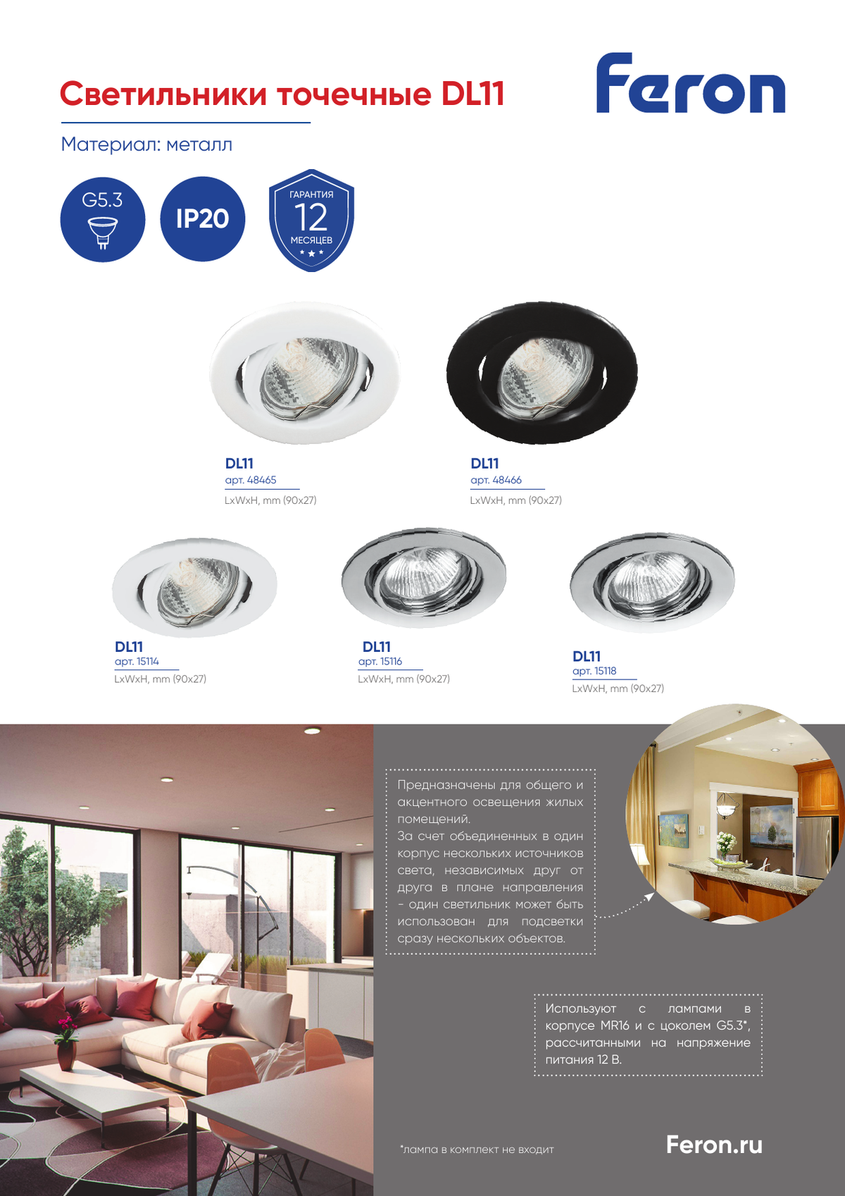 Светильник потолочный встраиваемый Feron DL11 MR16 50W G5.3 белый матовый 48465 по цене 85 руб. с фотографией и техническими характеристиками. Для покупки товара нажмите кнопку "Купить" и перейдите в корзину или позвоните по телефону 8 (495) 585 32 60 или 8 (800) 222 23 53.