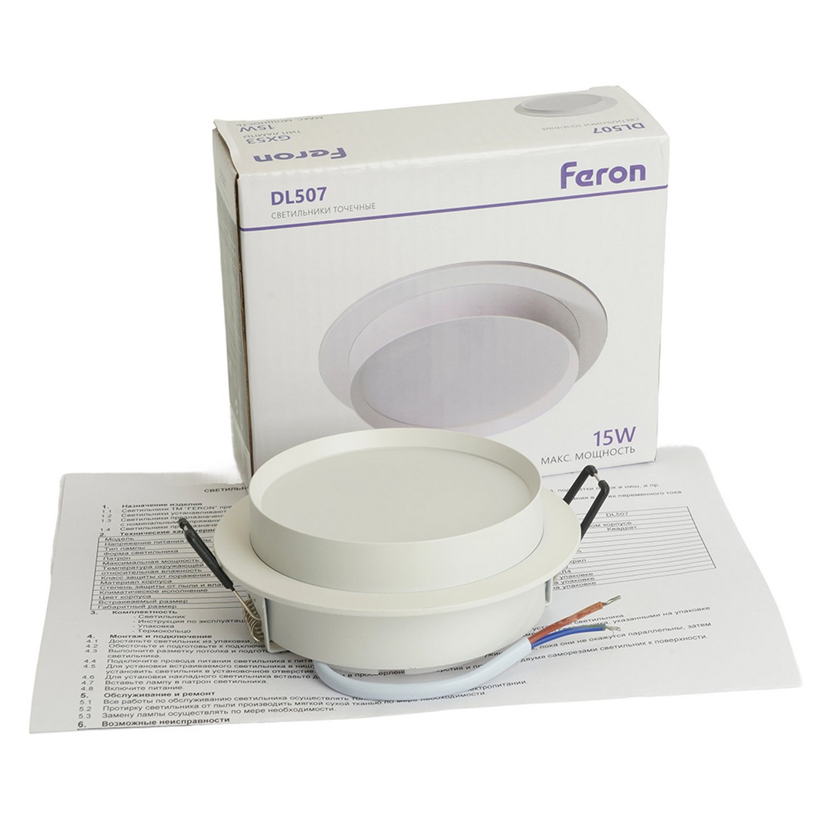 Светильник встраиваемый Feron DL507 потолочный GX53 белый круг 51350 по цене 363 руб. с фотографией и техническими характеристиками. Для покупки товара нажмите кнопку "Купить" и перейдите в корзину или позвоните по телефону 8 (495) 585 32 60 или 8 (800) 222 23 53.