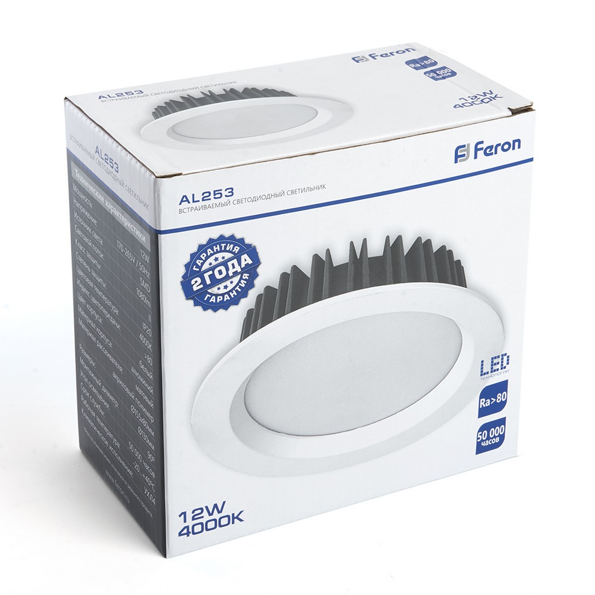 Светодиодный светильник Feron AL253 12W отличается современным дизайном и функциональностью. Модель оснащена мощным LED источником света на 12 Вт с цветовой температурой 4000K, что создает нейтральный белый свет, идеально подходящий для освещения как жилых, так и коммерческих помещений. Светильник производит 1080 люменов, что обеспечивает яркое и равномерное освещение с углом рассеивания 90°.