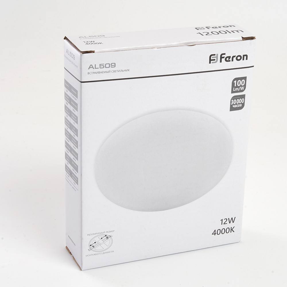 Встраиваемый светодиодный светильник AL509 TM Feron артикул 41208 разработан специально для решения проблемы несовпадения диаметров установочных отверстий при замене одних светильников на другие.