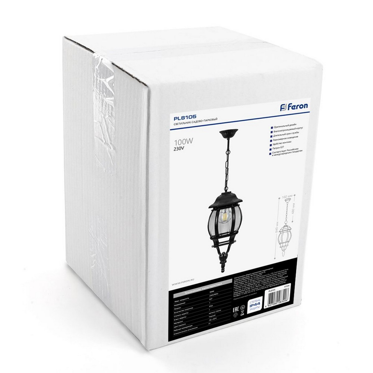 Уличный светильник Feron 8105 восьмигранный на цепочке 100W E27 230V, черный 11104 по цене 2 261 руб. с фотографией и техническими характеристиками. Для покупки товара нажмите кнопку "Купить" и перейдите в корзину или позвоните по телефону 8 (495) 585 32 60 или 8 (800) 222 23 53.