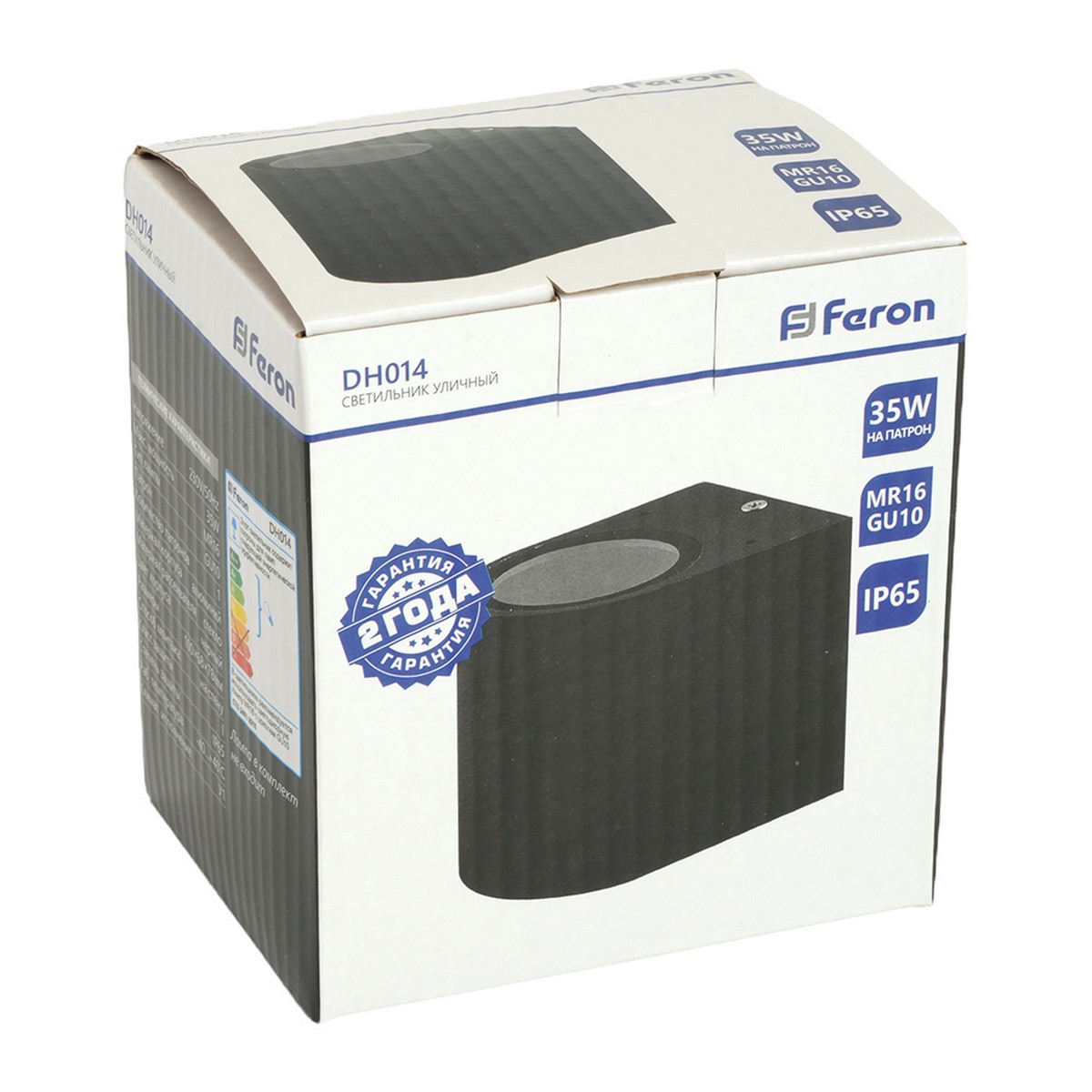 Feron DH014 оснащен цоколем GU10 и предназначен для работы от сети 230V. Он эффективен и экономичен с максимальной мощностью лампы 35W. Индекс защиты IP65 гарантирует защиту от пыли и влаги, позволяя использовать светильник в любых погодных условиях. Размеры модели составляют 78x68x100 мм, что делает ее компактной и не занимающей много места на стене.