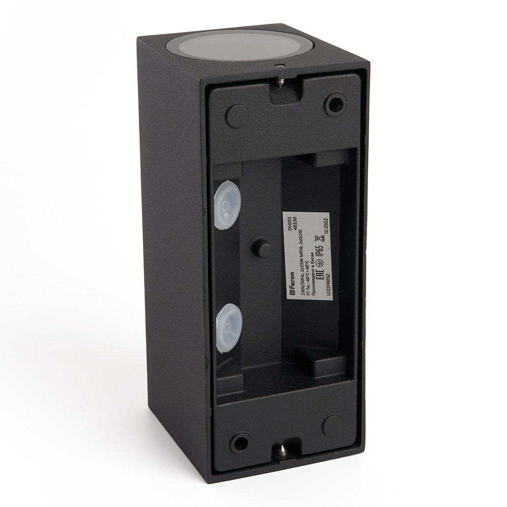 Светильник садово-парковый Feron DH051 на стену 2*GU10 230V черный 48330 по цене 1 078 руб. с фотографией и техническими характеристиками. Для покупки товара нажмите кнопку "Купить" и перейдите в корзину или позвоните по телефону 8 (495) 585 32 60 или 8 (800) 222 23 53.