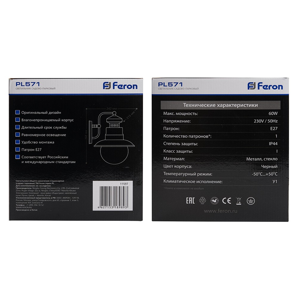 Светильник садово-парковый Feron PL571 на стену вниз 60W 230V E27 черный 11597 по цене 3 689 руб. с фотографией и техническими характеристиками. Для покупки товара нажмите кнопку "Купить" и перейдите в корзину или позвоните по телефону 8 (495) 585 32 60 или 8 (800) 222 23 53.