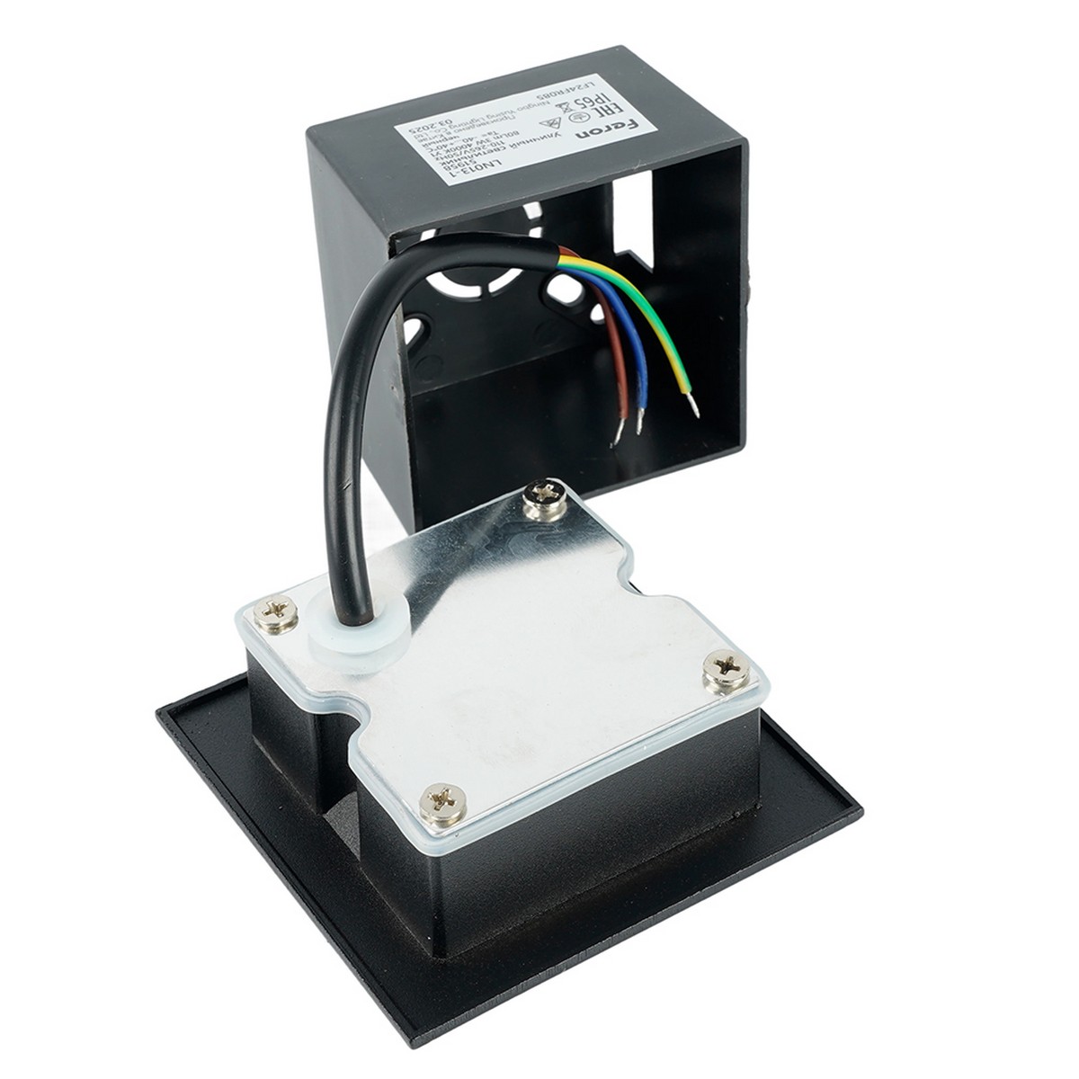 Светильник встраиваемый светодиодный, для лестничной подсветки (ДВУ) FERON LN013-1, 3W 4000К (белый натуральный), 110-265V, 80Lm, IP65, цвет черный, корпус алюминий, пластик, рассеиватель стекло, 86*86*63 мм, монтажн.отв. 68*68 мм.